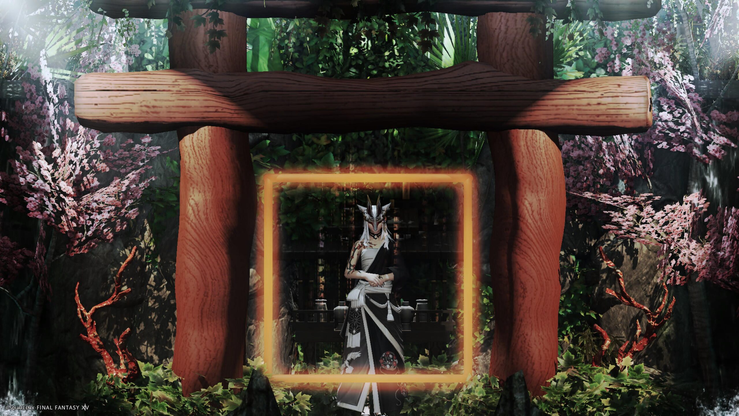 鳥居の前は数名並んで座れます。