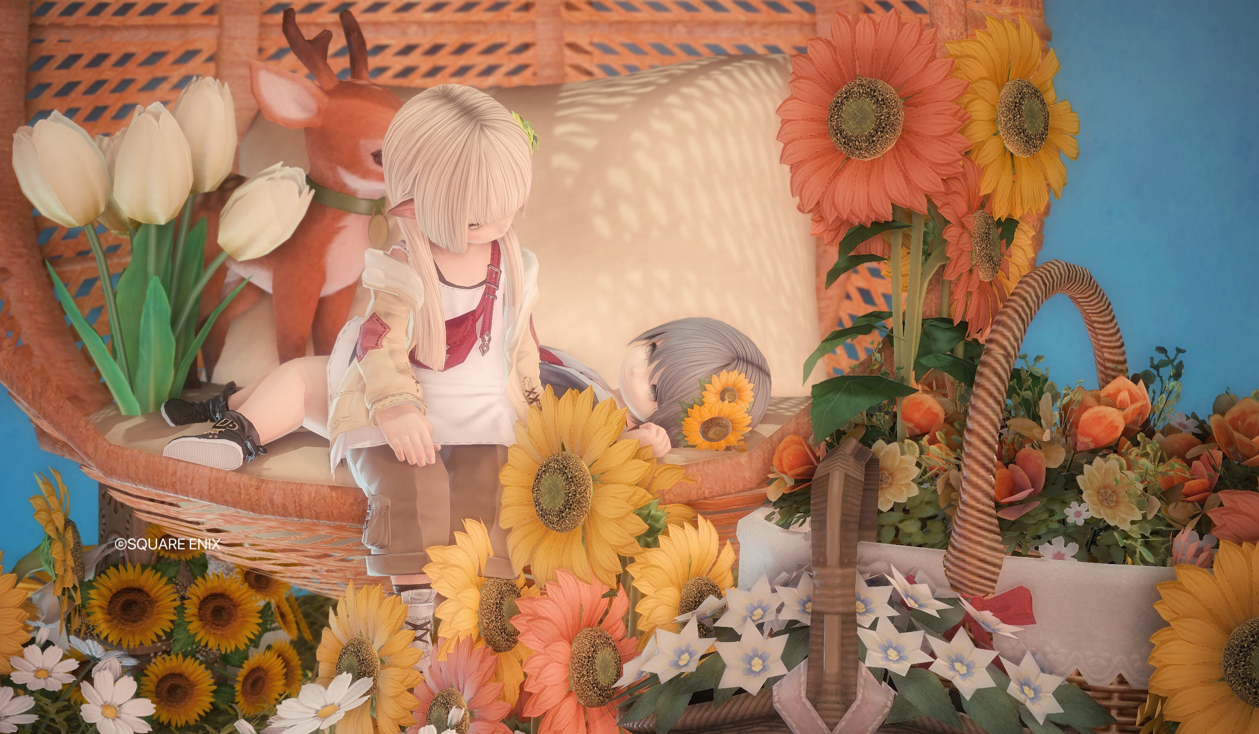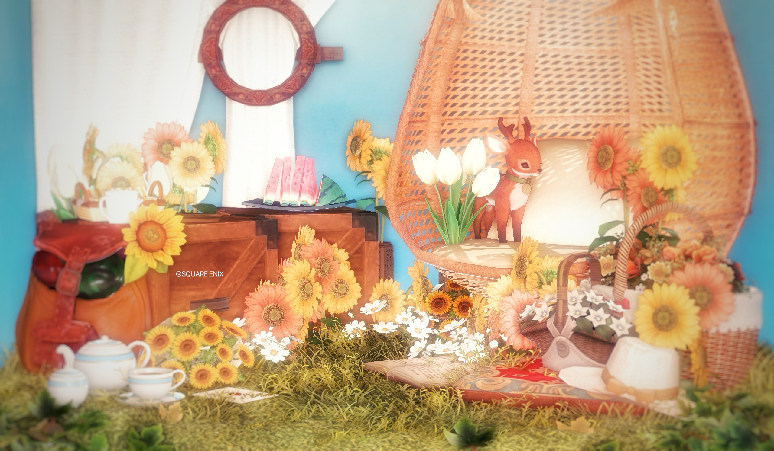 ひまわりの揺れる午後は眠くなる。 芝生とクッションで居眠り、箱の上とクッションに座れます。