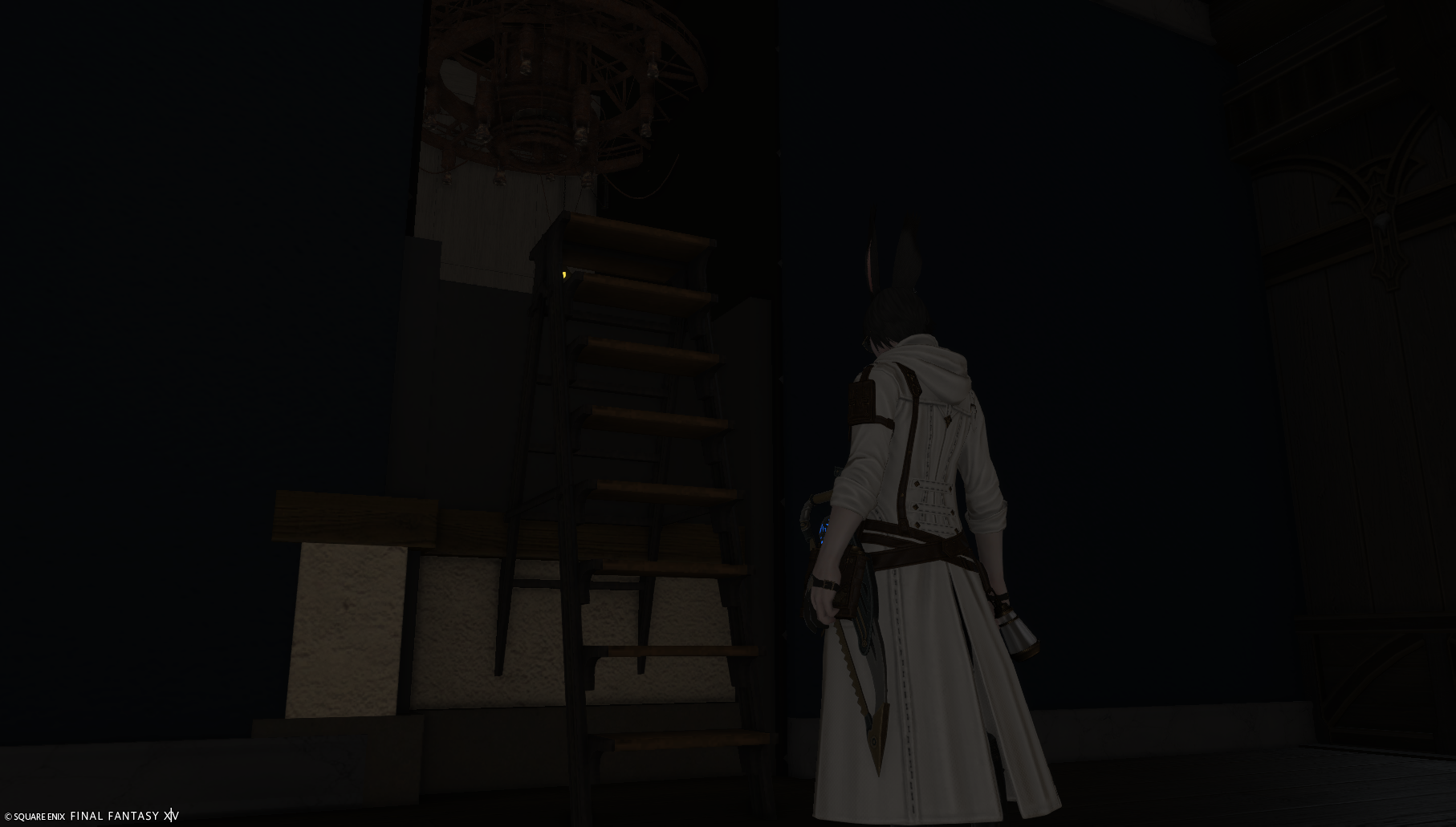 お帰りの際は出入口の方向の壁の段差にジャンプで乗り、梯子にジャンプすると出られます。(4枚目)