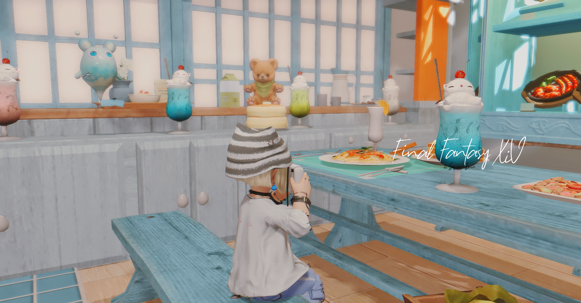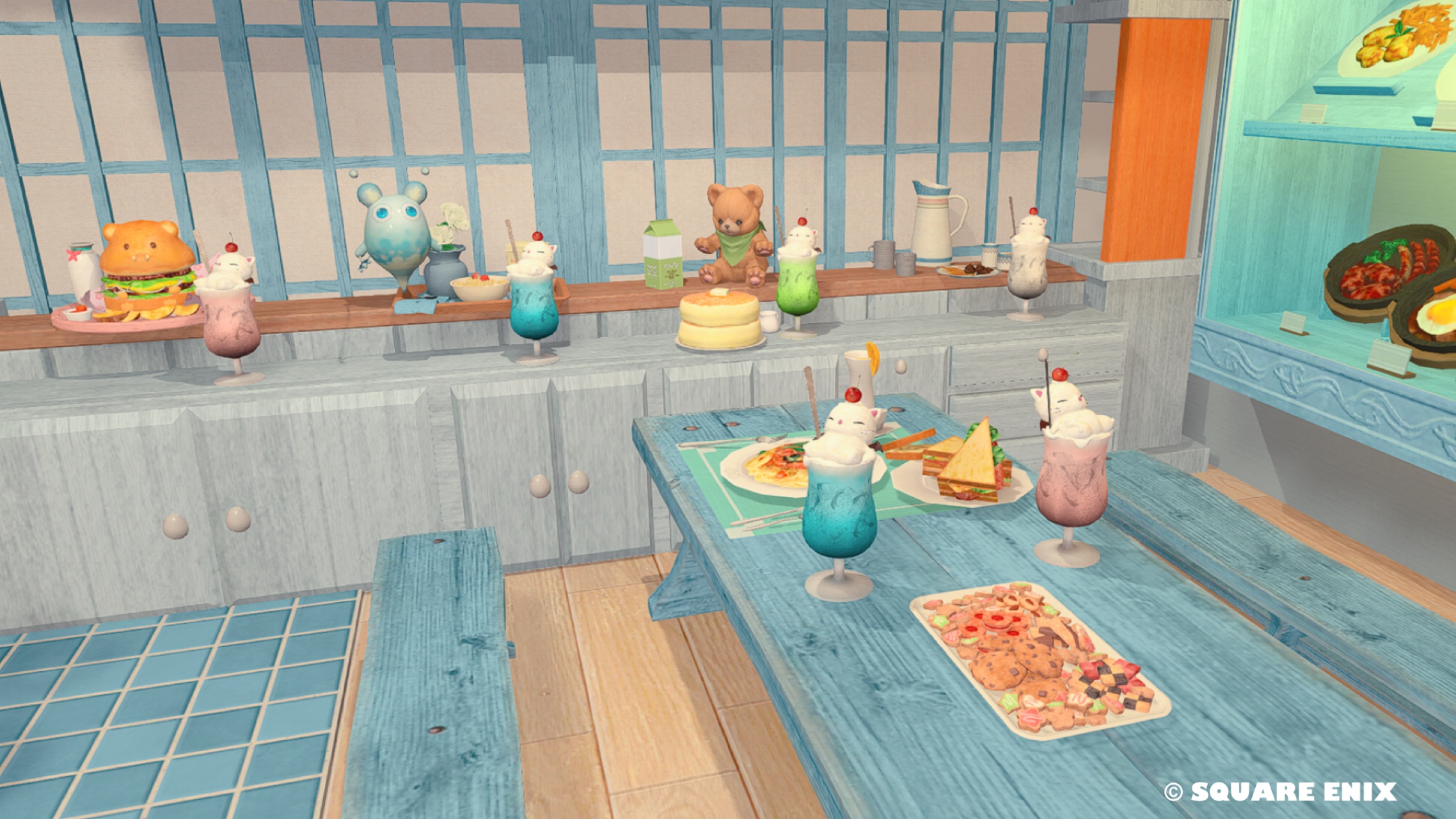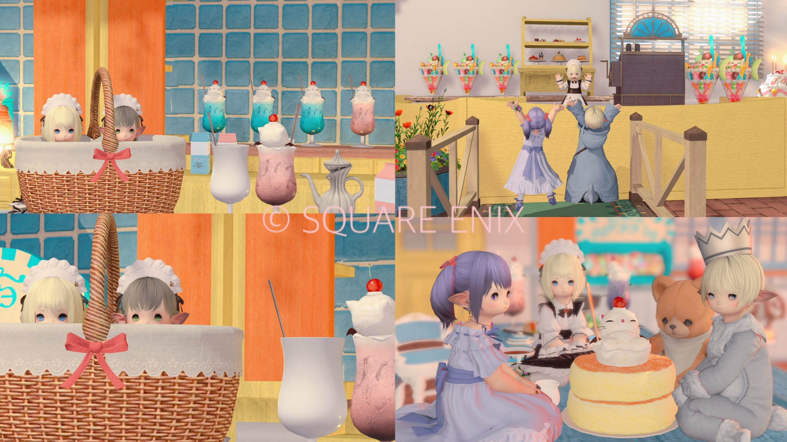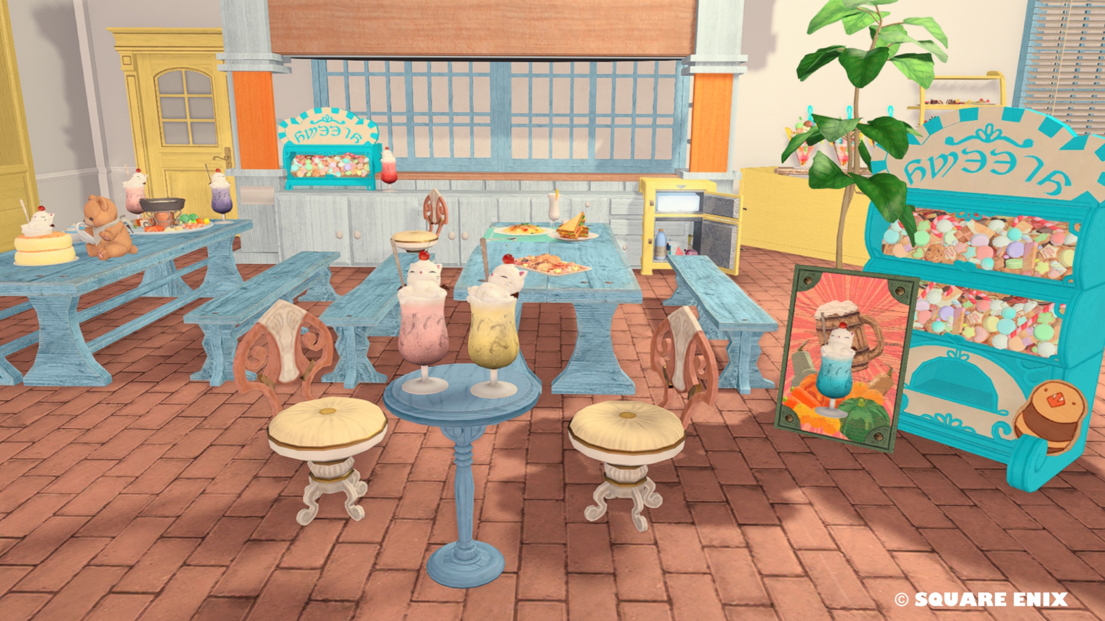黄色×水色のパステル空間で、かわいいスイーツやふわふわ「もぐもぐフロート」を楽しもう。思わずにこにこ、元気いっぱいのハッピータイムが待っています。