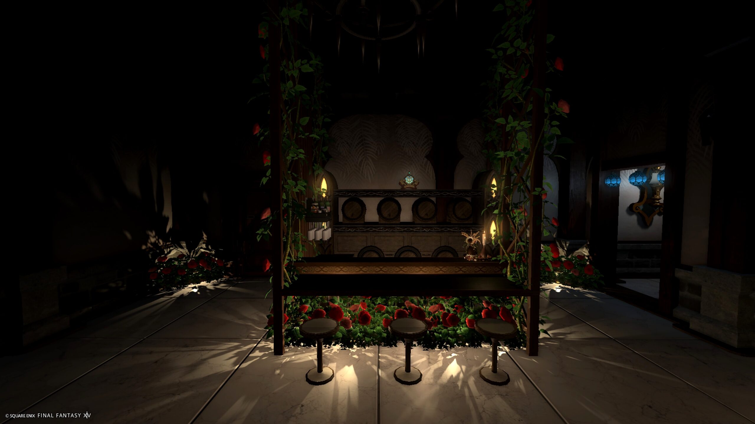 葬。-Sou- by R(||BR||)🌐Meteor / Belias(||BR||)📍エンピレアム7区23番(||BR||)罪の十字架をリニューアル!赤い十字架と赤い薔薇のスタジオです。(||BR||)棺桶の所3人座れます(||BR||)1階は翼のある所に椅子仕込んでます(||BR||)#Ru_st(||BR||)https://studio-xiv.com/studio/85170/