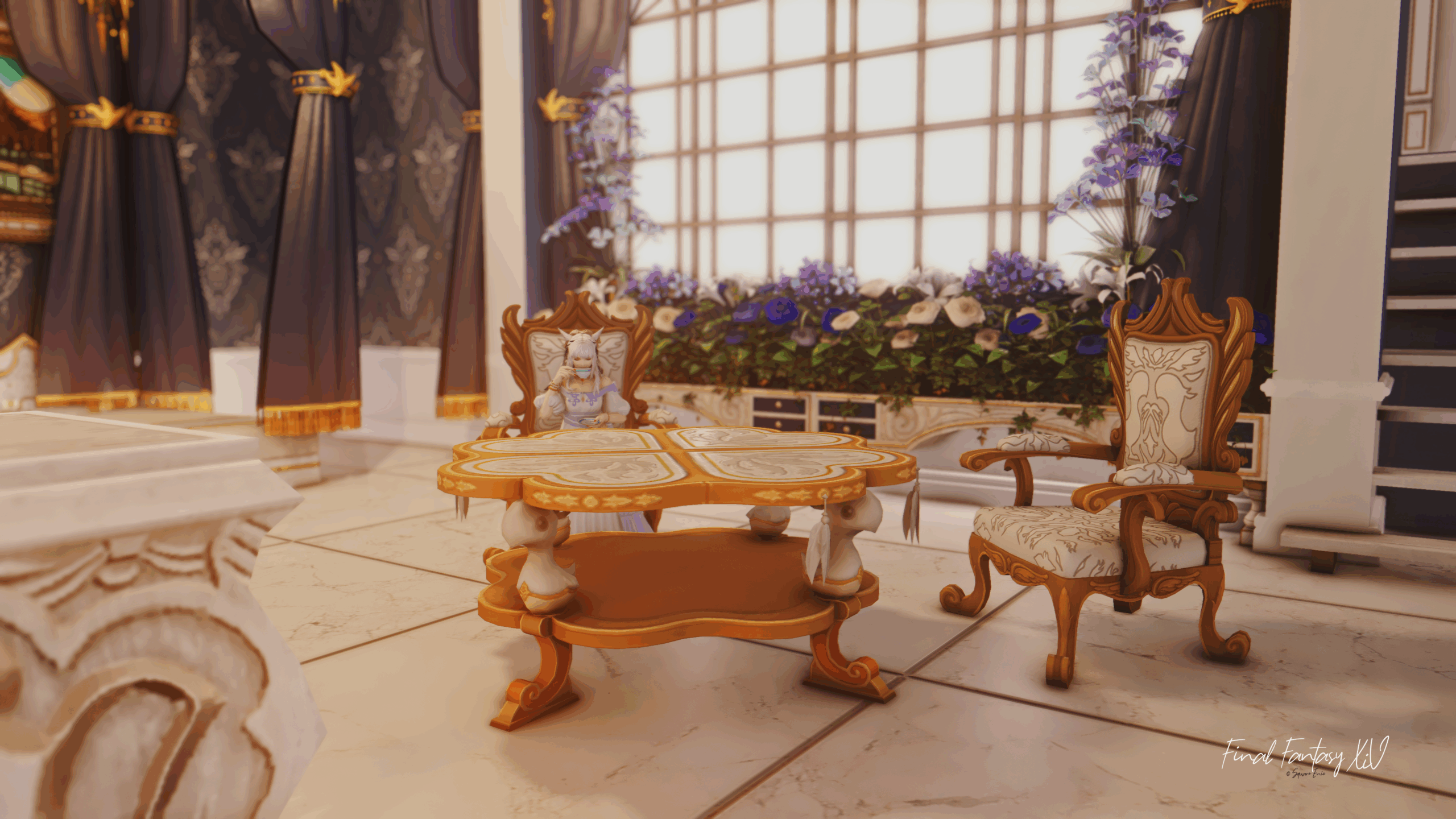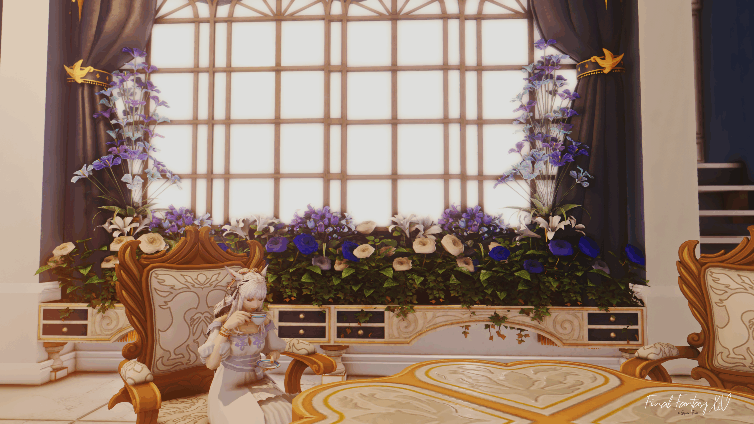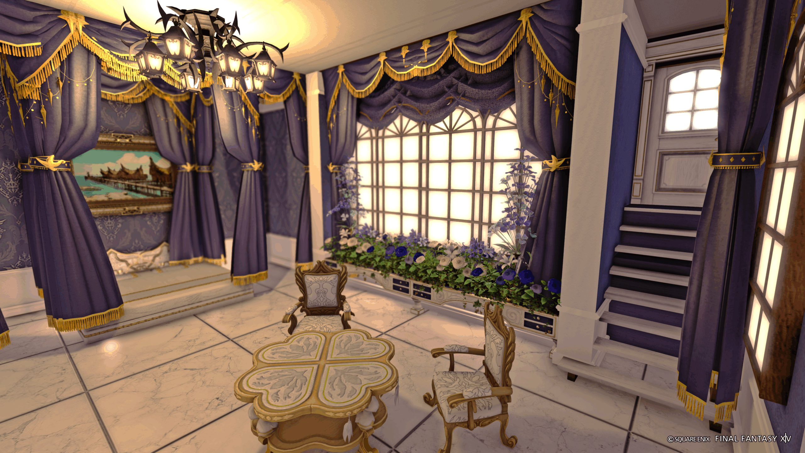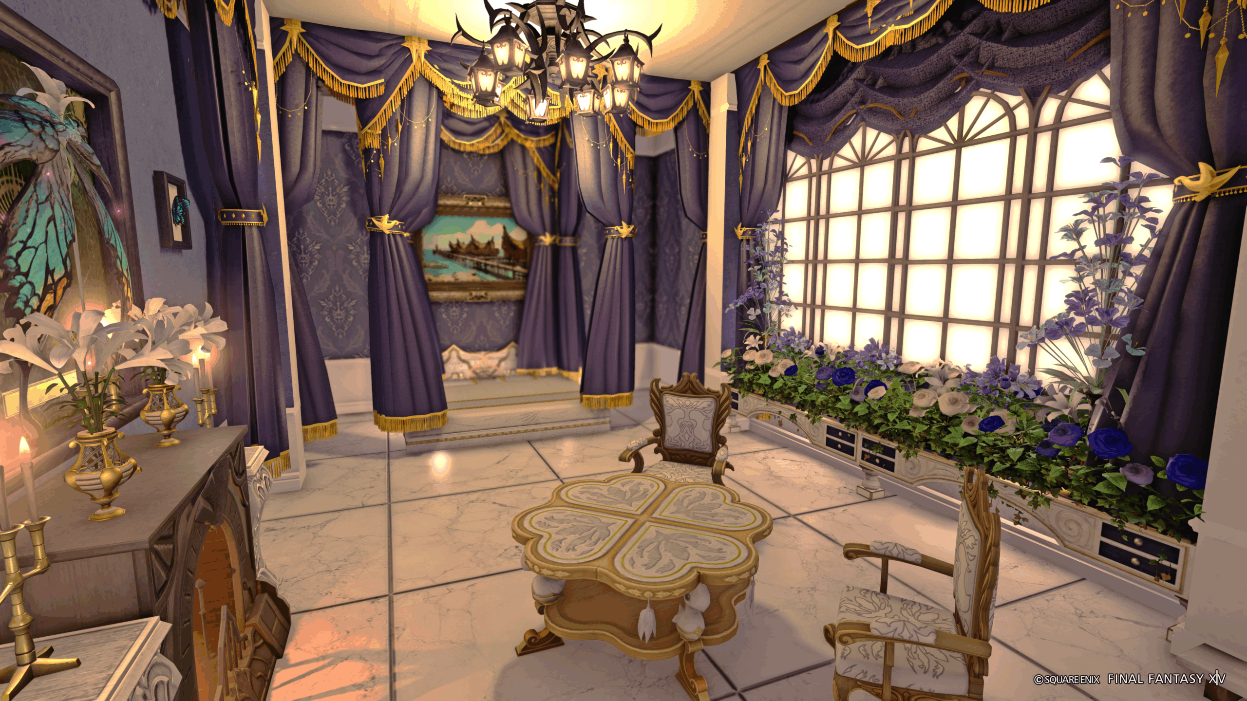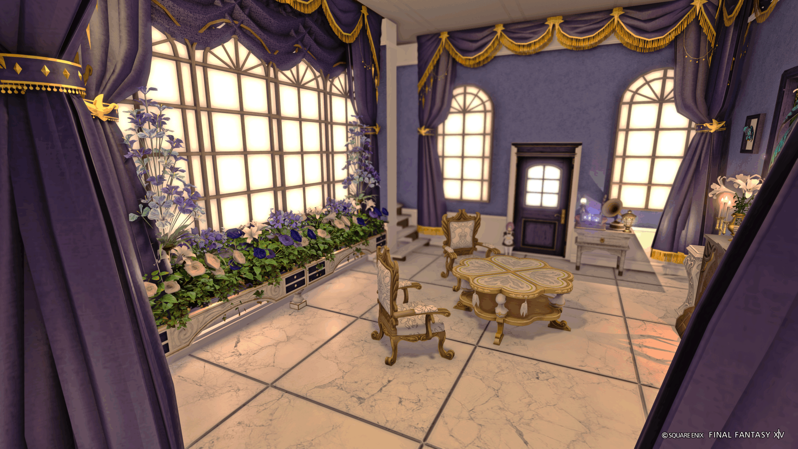 窓の多いへやとなりますため、日の光が入るエオルゼア時間6:00-18:00の間がおすすめです。