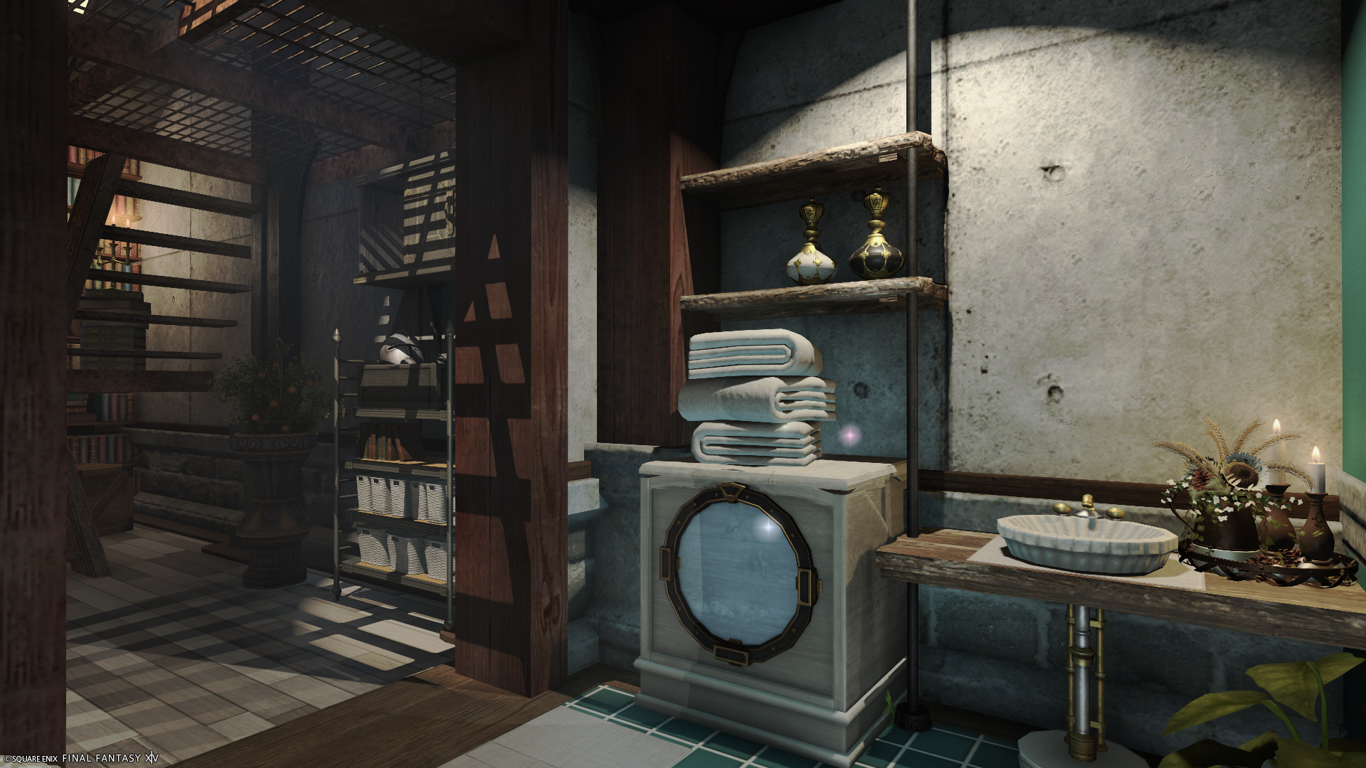 インダストリアルハウス by アッシュ(||BR||)🌐Gaia / Alexander(||BR||)📍エンピレアム10区13番(||BR||)男の一人暮らしをイメージした、インダストリアル風ハウジングです(||BR||)2階もございます(||BR||)#volcanic_A(||BR||)https://studio-xiv.com/studio/85969/