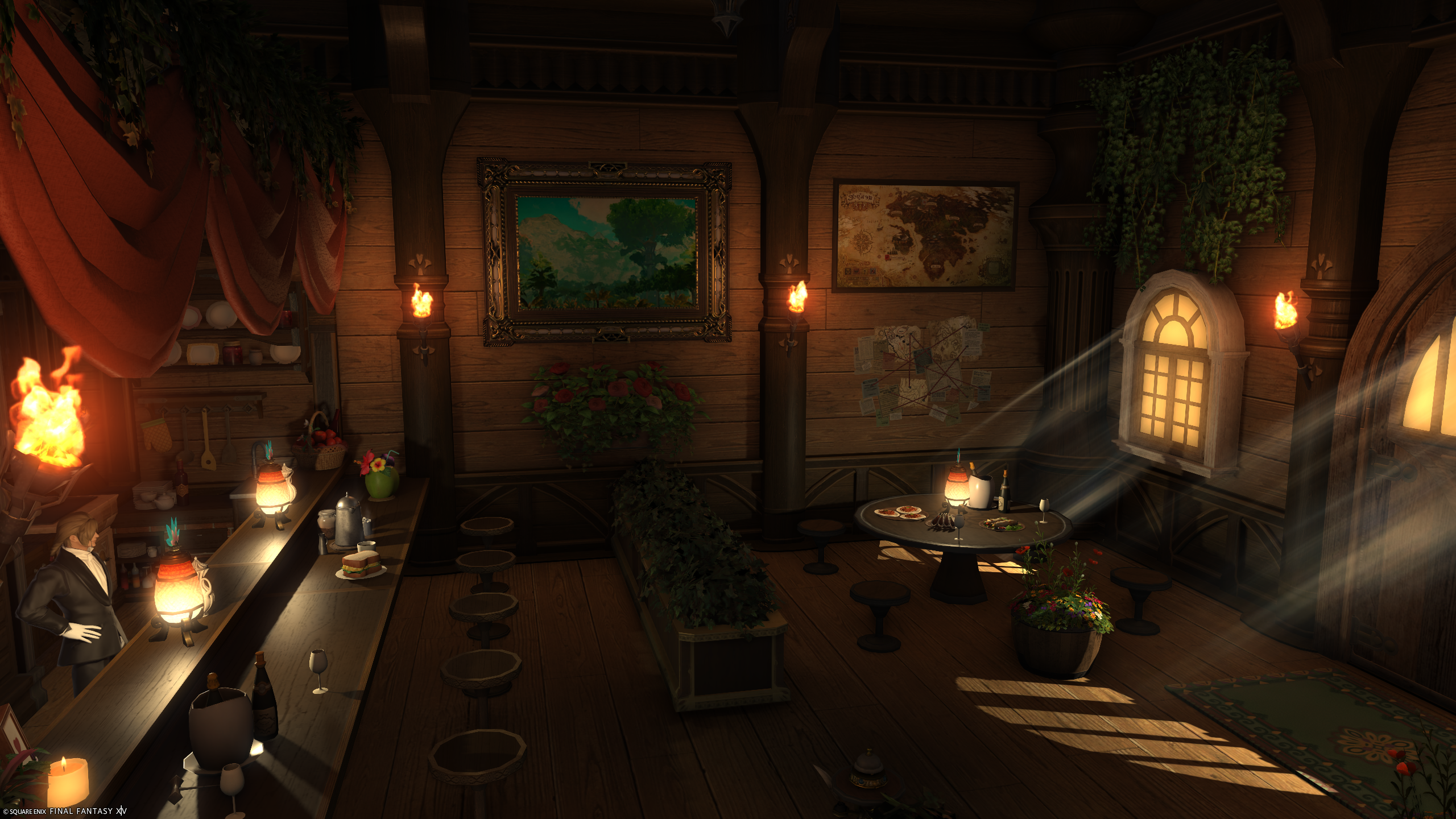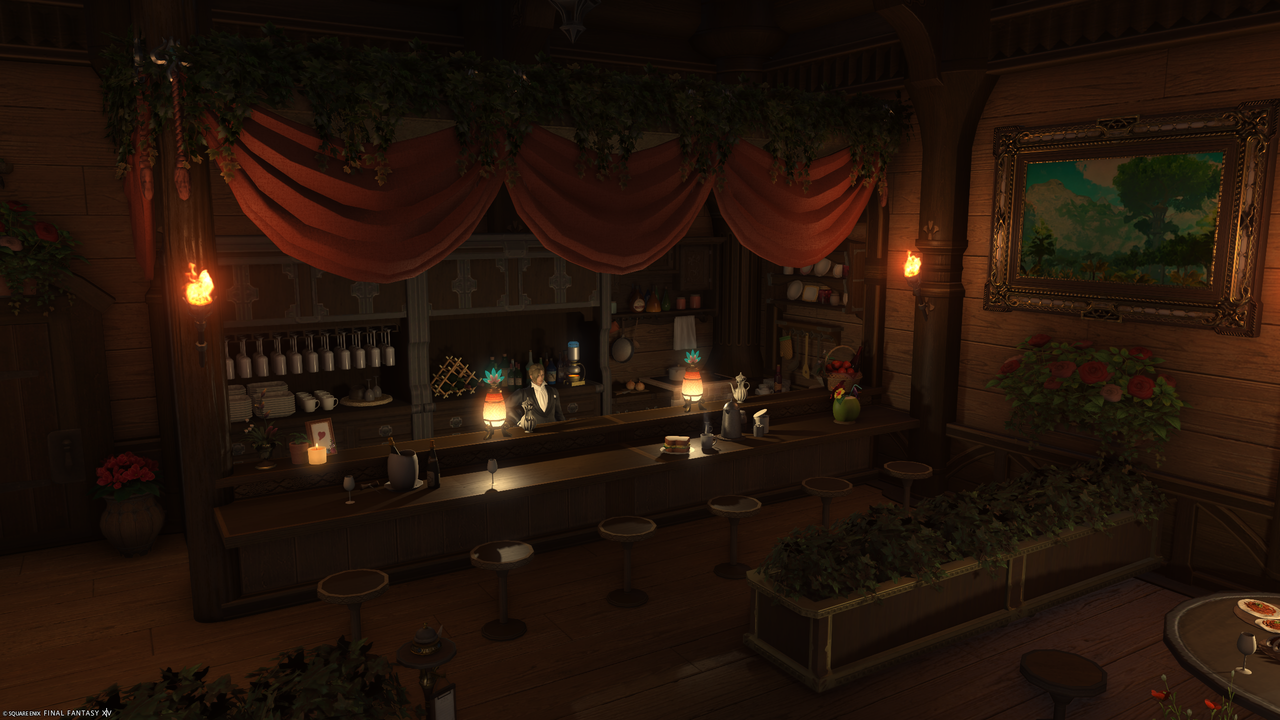 トライヨラ:夜のBGMとトライヨラ・テーブルランプが使いたくて、南国にある地元の人たちが集まるようなお店をイメージして作りました。