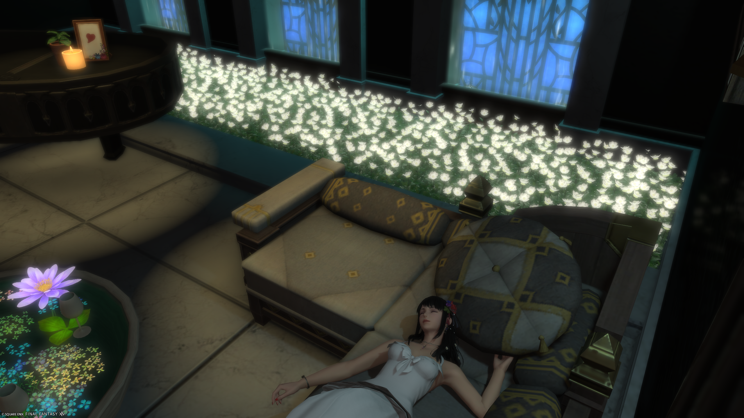 ザナラーン・カウチで「居眠りする」エモートが使えます。