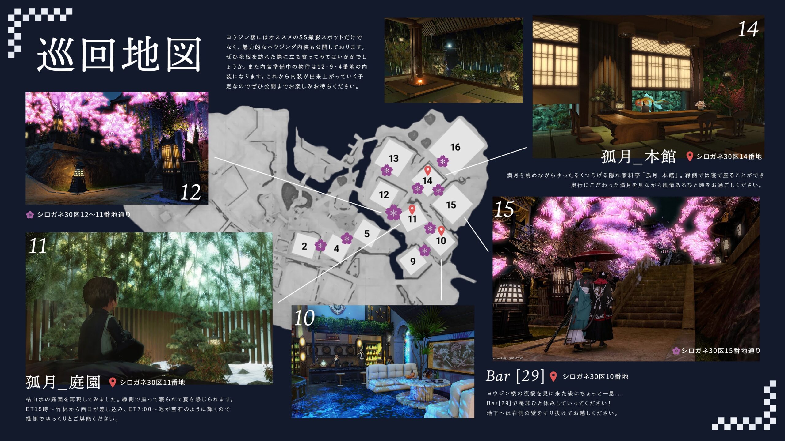 15番地・14番地・11番地に和風内装を公開していますので休憩がてら立ち寄ってみてください!