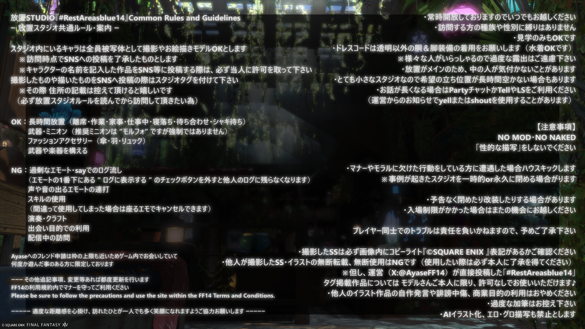 ※但し、運営(X:@AyaseFF14)が直接投稿した「#RestAreasblue14」