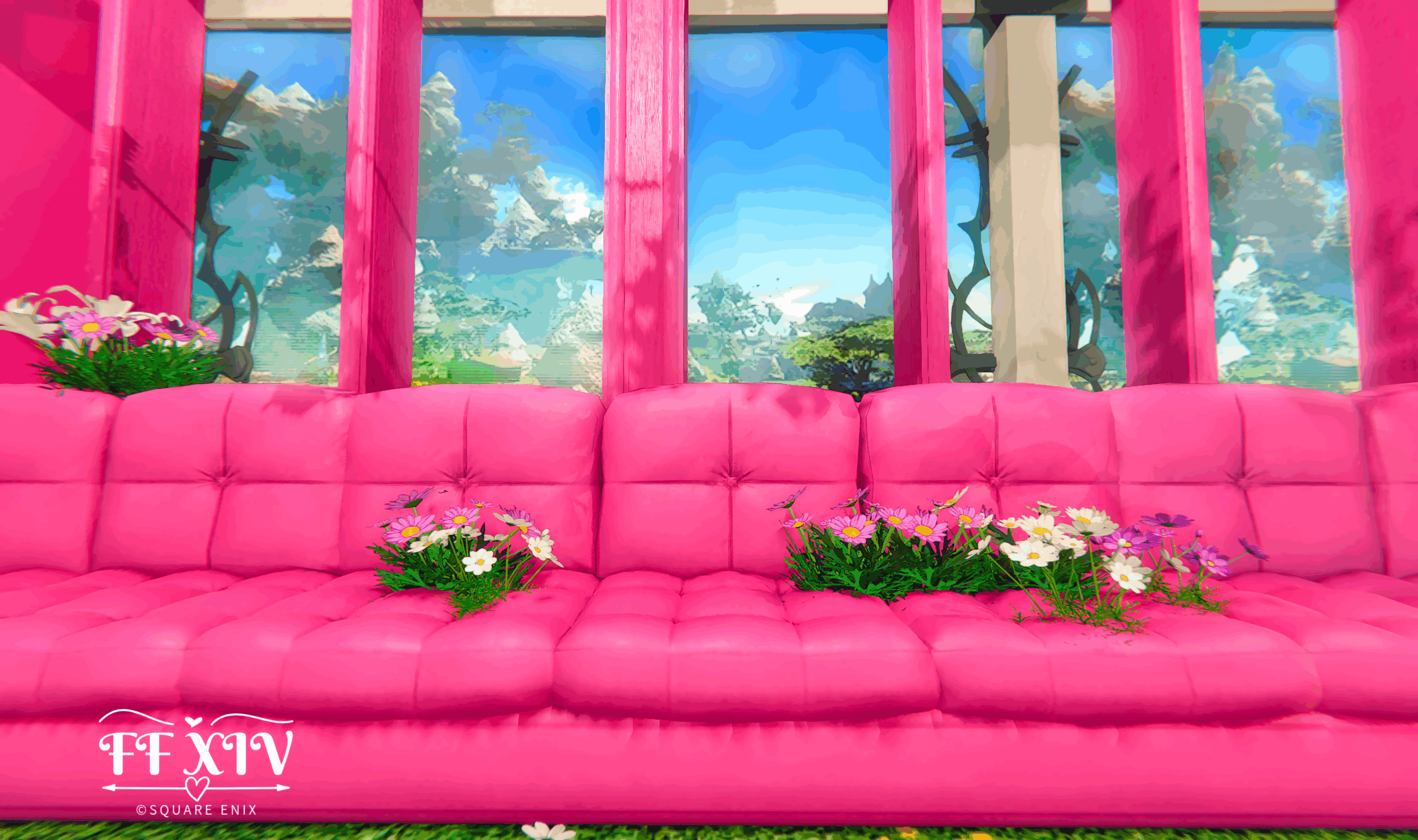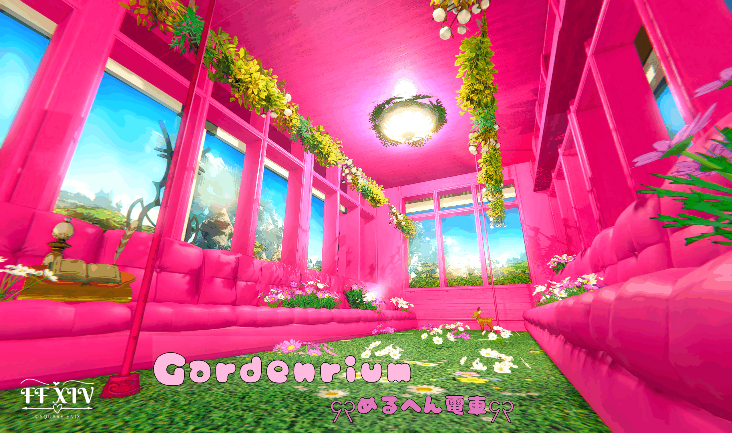 こちらは電車内を表現したく、しかもメルヘンな感じでビビットピンクのチェリーピンクで一括してみました