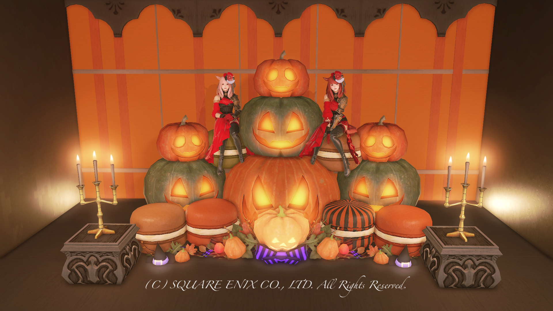 かぼちゃの上に座りたい人は黒い床からジャンプして乗ってから座るエモ