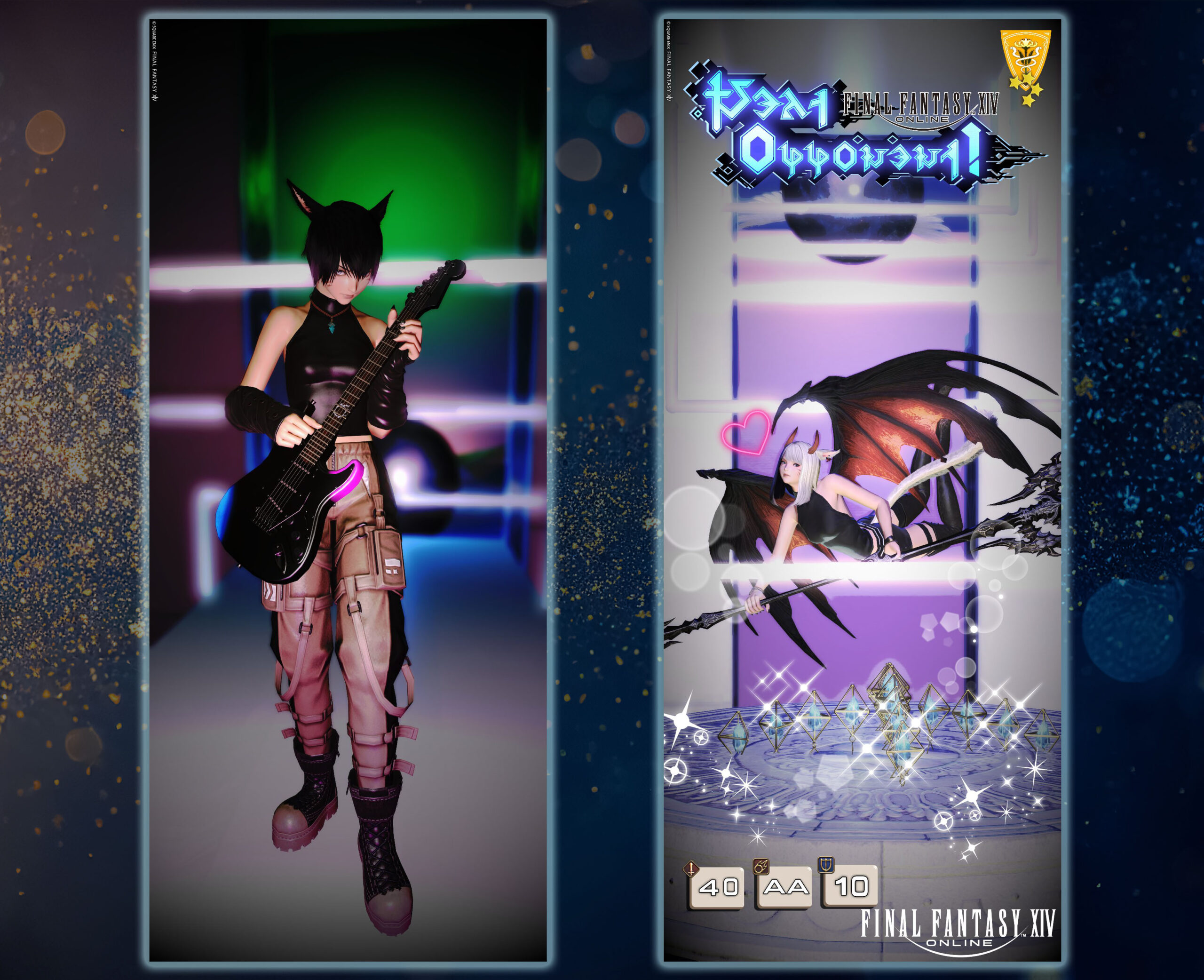 右:竜騎士の勝利を喜ぶエモートでジャンプしたところを用いて、ガチャのレア演出を作ってくださいました!上下反転して天井を画面効果とともに上手に使ってくださっています!こういう自由な発想で好きなように切り取ったり色替えしてくださってOKです!ぜひ楽しんでね!