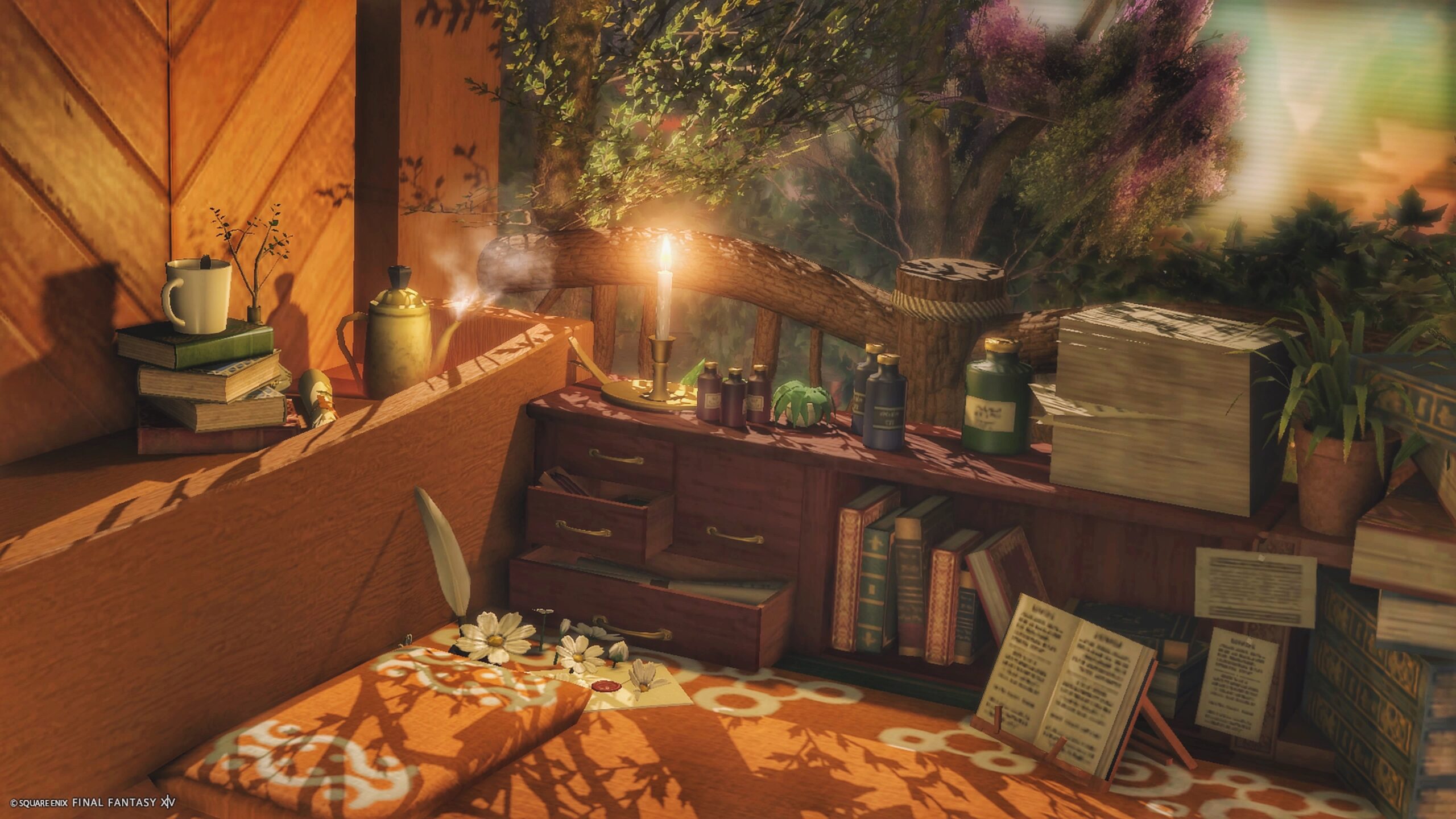 秋の夕陽が差し込む屋根裏の一角を作ってみました。