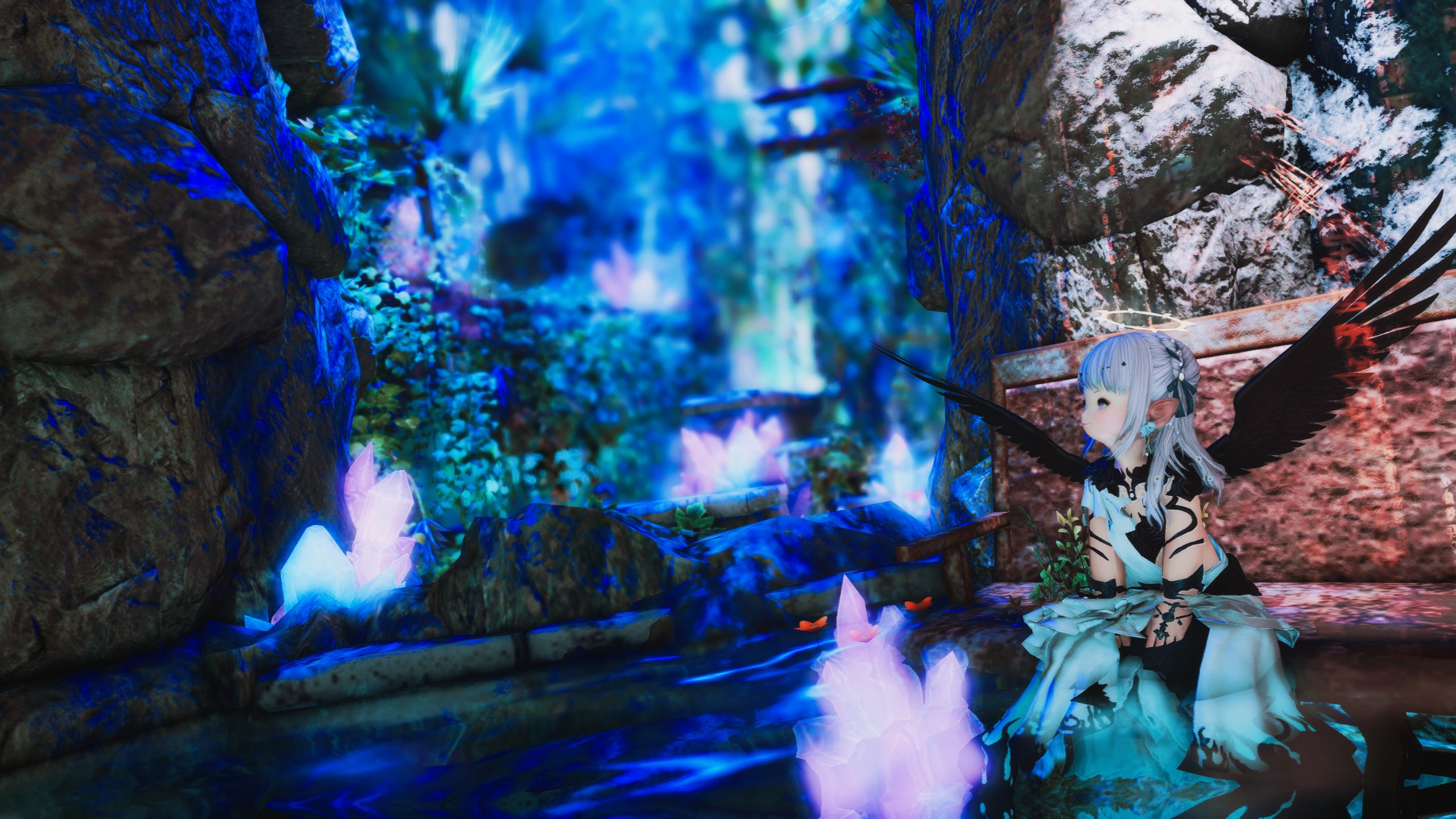 紫の結晶と草がゆっくりと侵食をはじめ、
