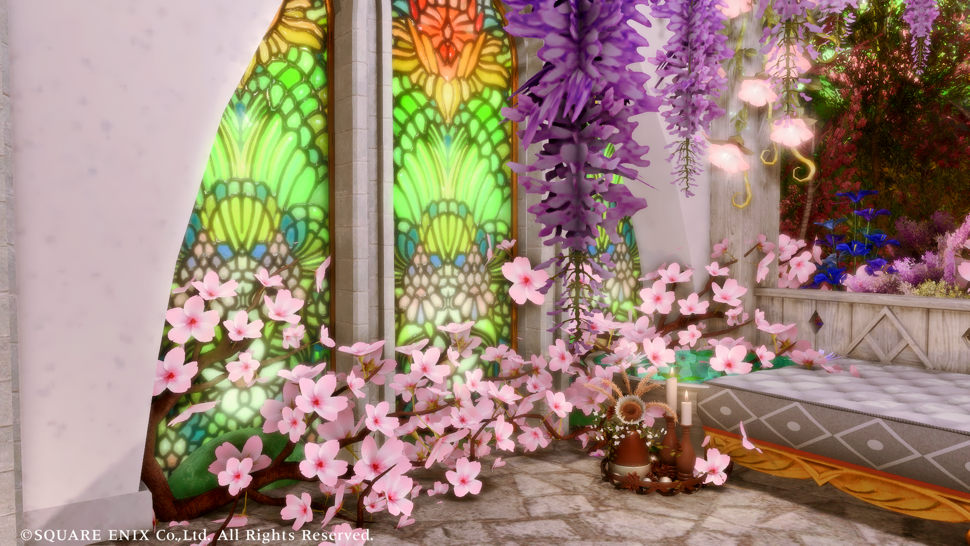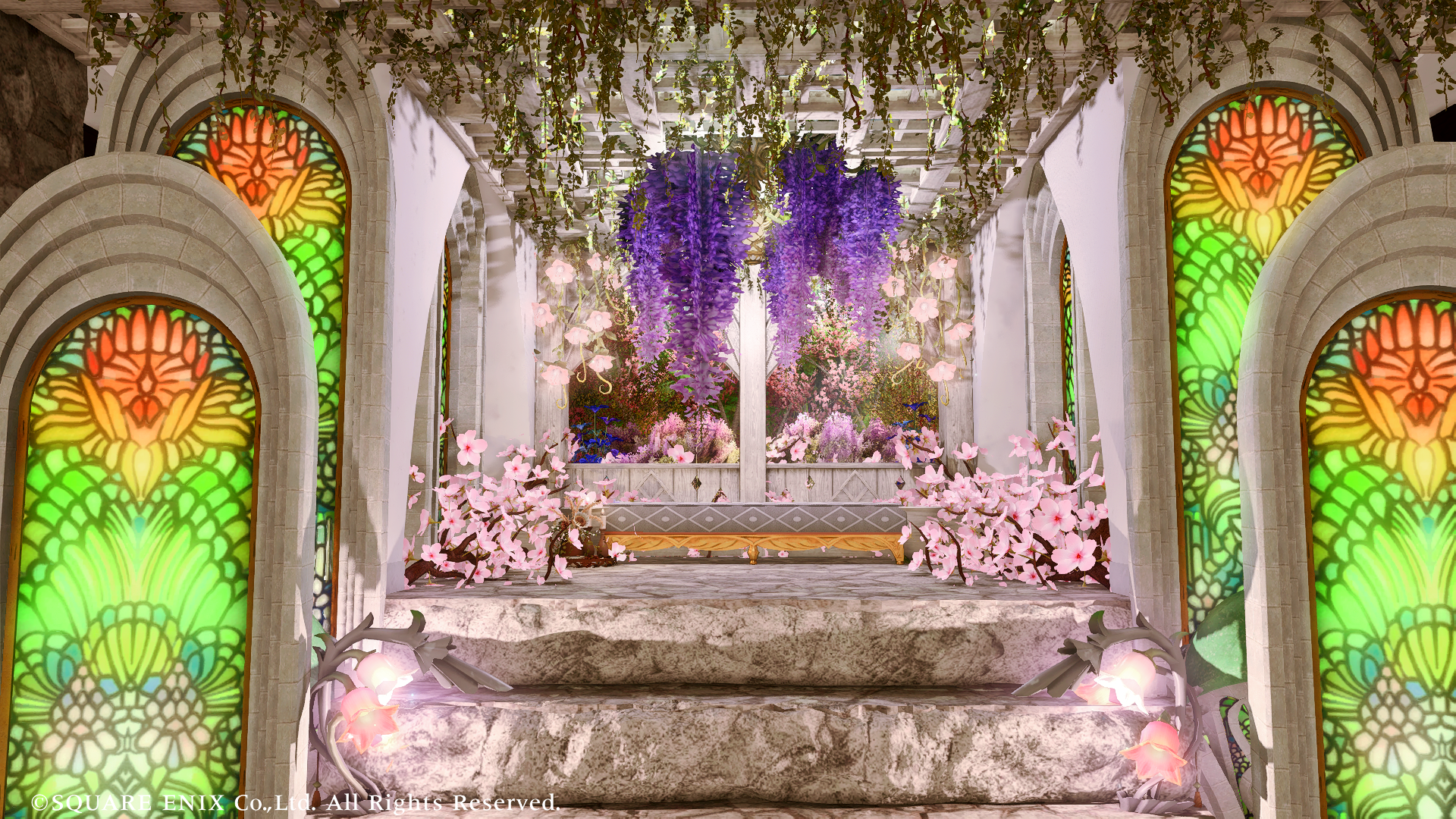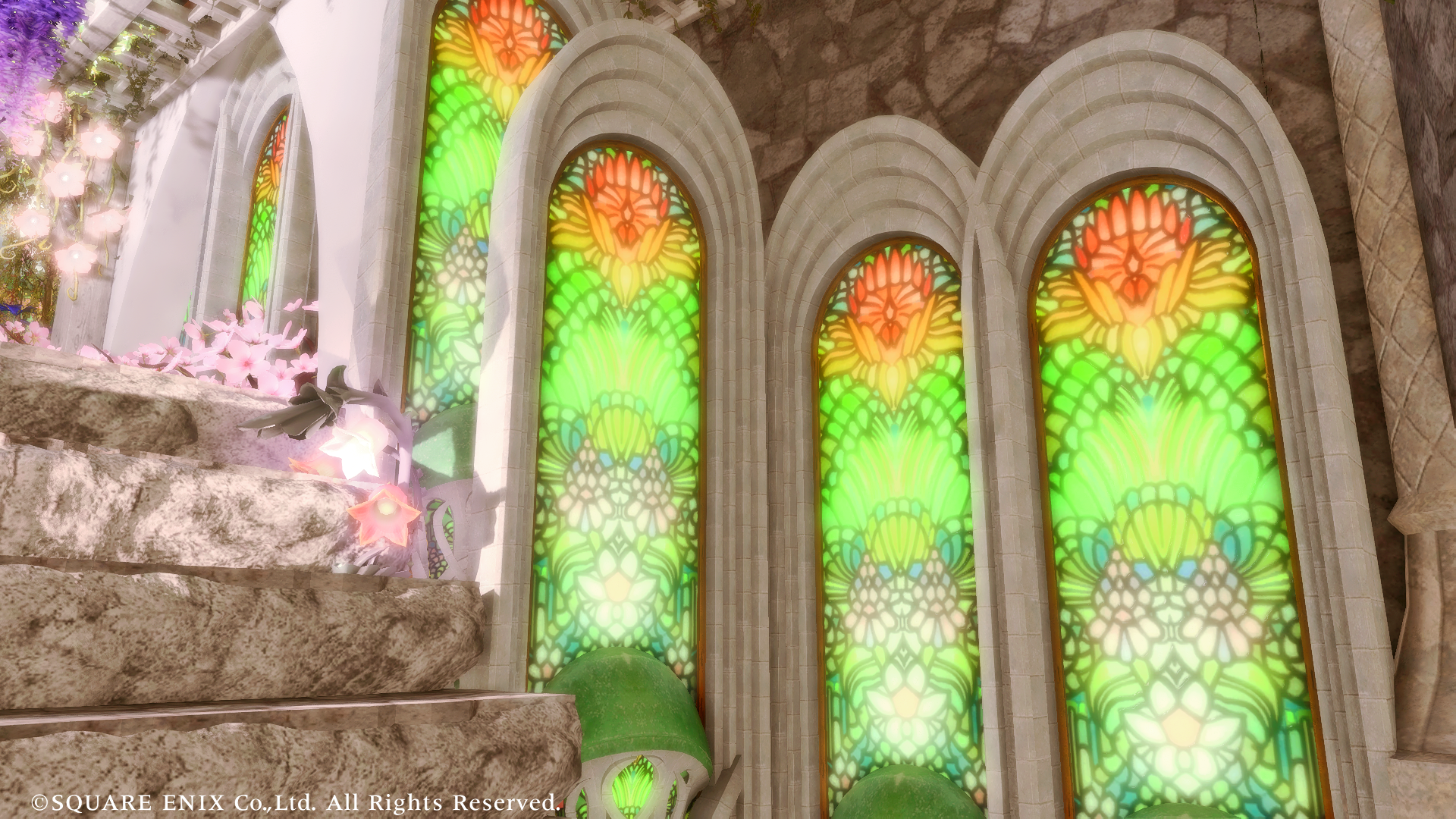 薫花光庵 by さぎり(||BR||)🌐Meteor / Shinryu(||BR||)📍ミスト・ヴィレッジ23区(||BR||)アパルトメント27号室(||BR||)花の香りが漂ってくるような柔らかな色調の庭に(||BR||)ステンドグラスから暖かな光が差し込む幻想的なスタジオを作りました。(||BR||)手前から階段2段目座れます(||BR||)#St_Colorful(||BR||)https://studio-xiv.com/studio/88423/