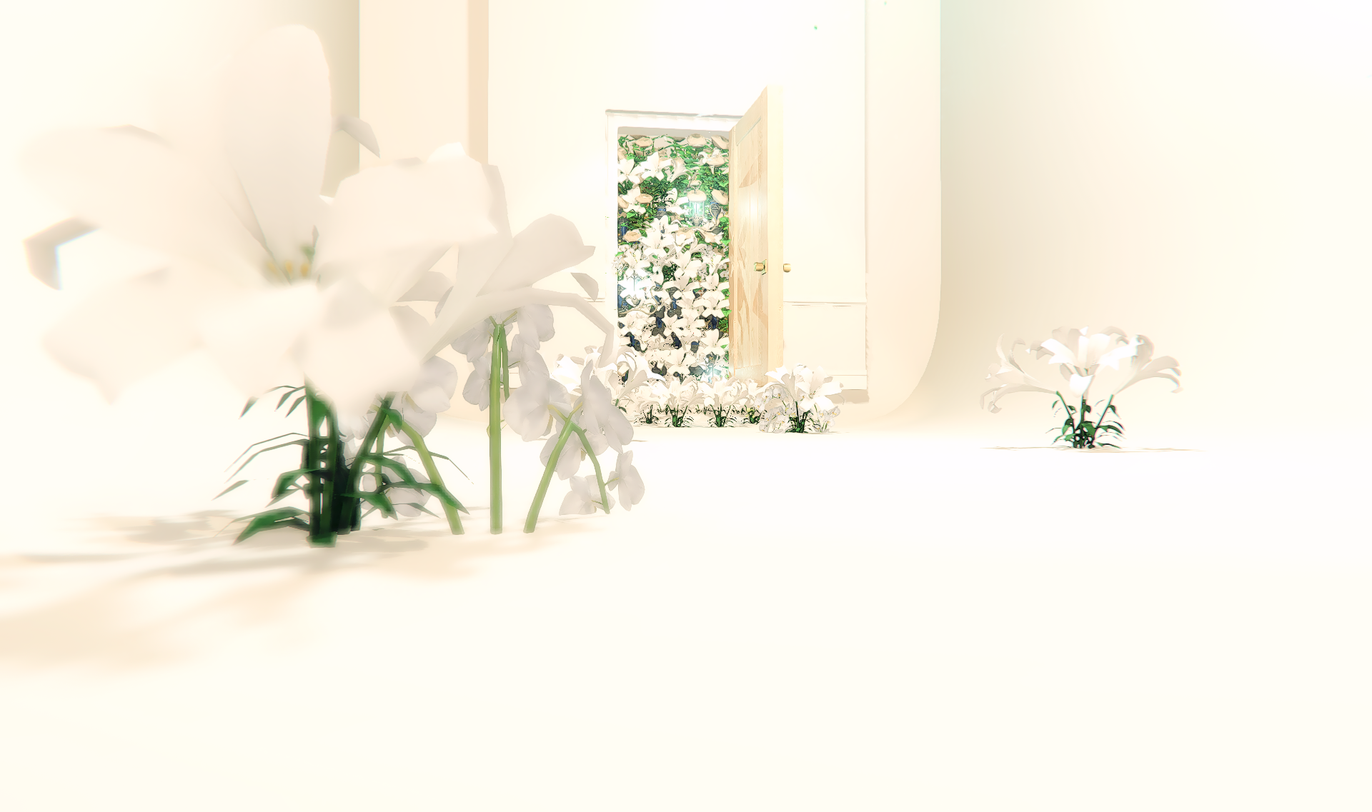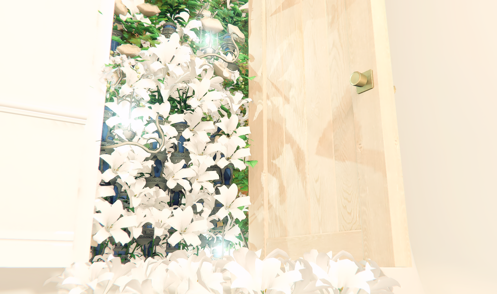 The white lilies that look like they're about to spill out of the door are a highlight, and I think the ones growing on the floor would also look great in screenshots.