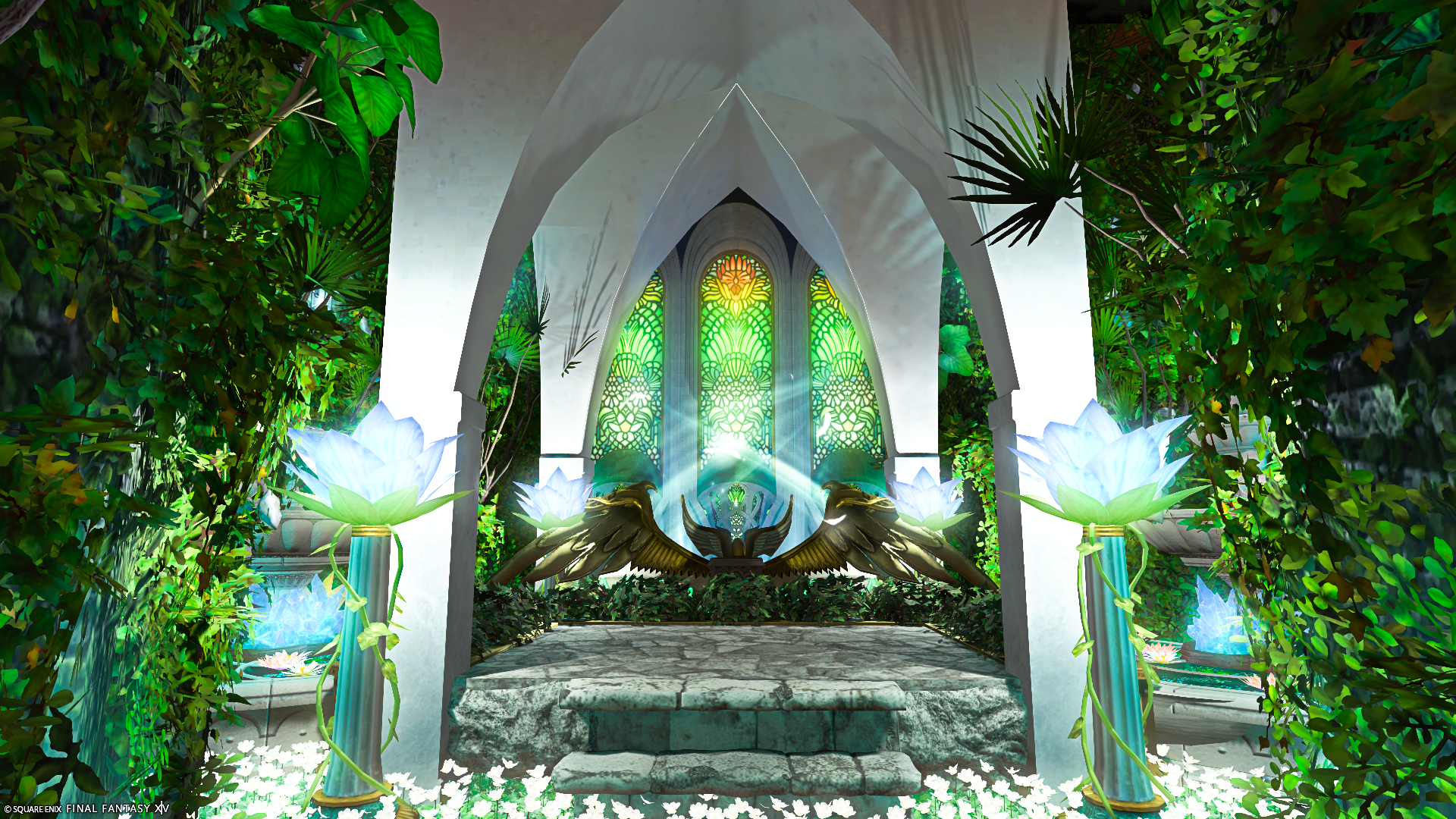 こちらはパッチ7.35で追加されたリェー・ギア・ステンドクリスタルを使用し、神秘的な森林をイメージして作成した撮影スタジオになります。
