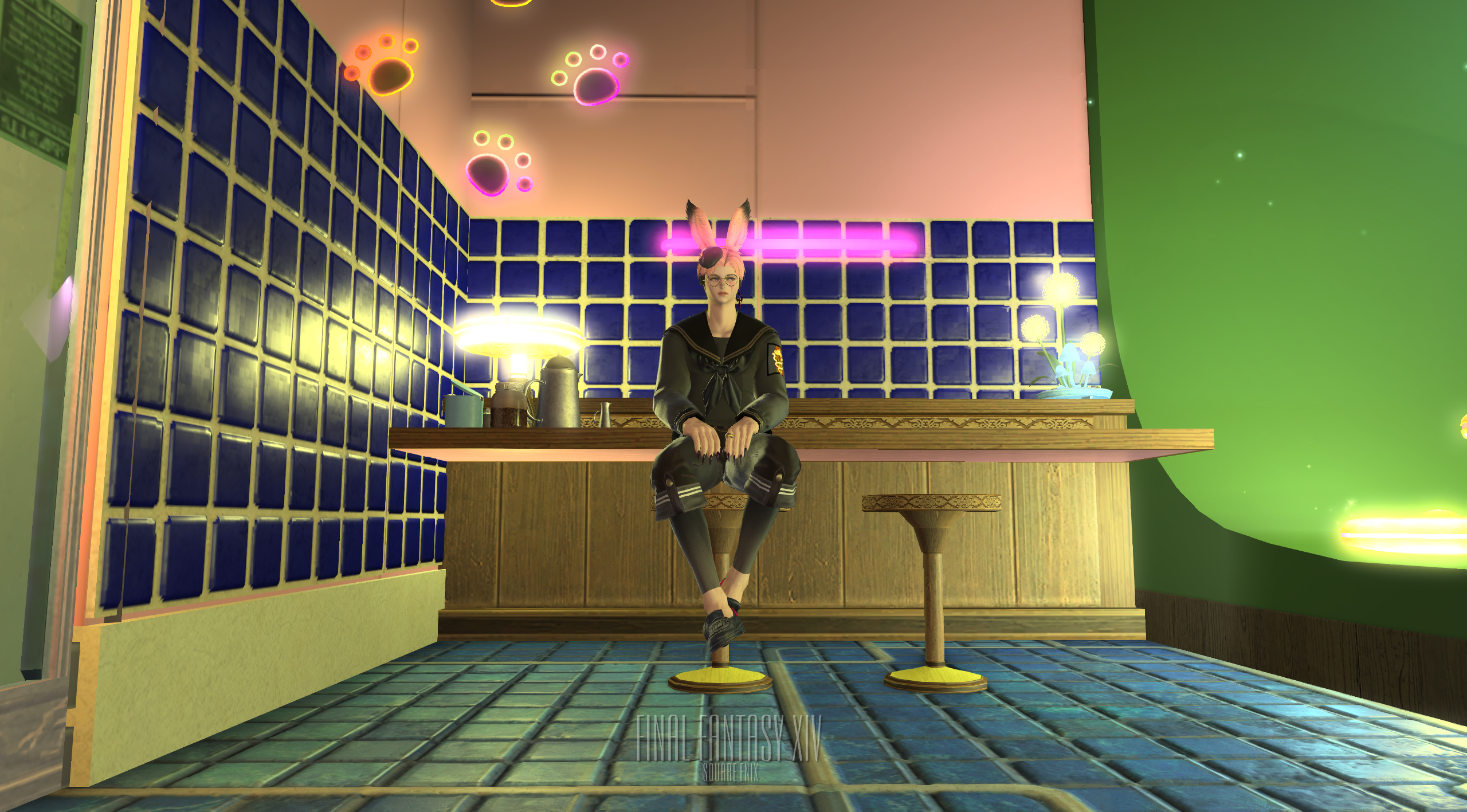 ニュートロ喫茶「くり~む・さいだあ」 by ロザエ(||BR||)🌐Elemental / Typhon(||BR||)📍エンピレアム7区23番1号室(||BR||)ニュー・レトロな喫茶、題してニュートロ喫茶「くり~む・さいだあ」(||BR||)入って正面はクリームソーダのようなシュワシュワ空間、(||BR||)入口付近はネオ・チャイナな空(||BR||)#stadio_bonbon(||BR||)https://studio-xiv.com/studio/89004/