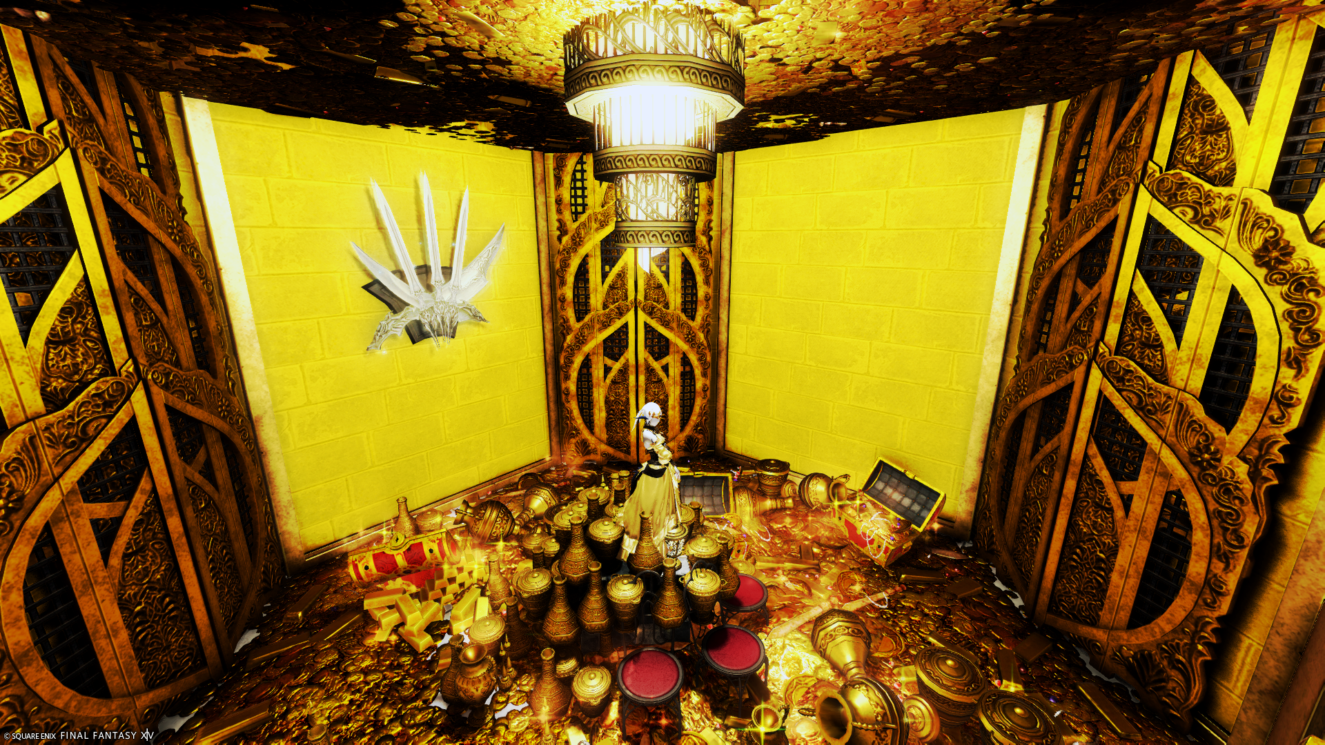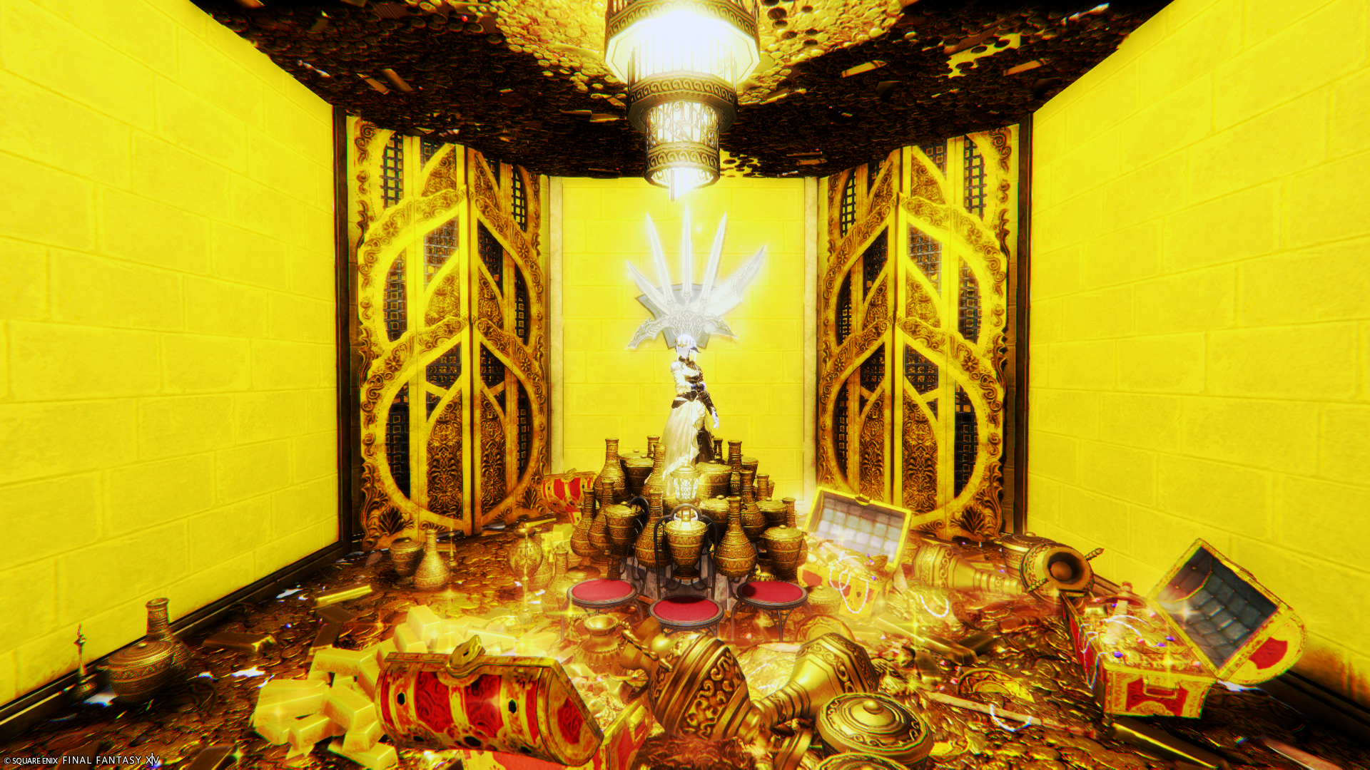 空虚な華美さ by XI Faith(||BR||)🌐Gaia / Alexander(||BR||)📍ゴブレットビュート8区34番13号室(||BR||)床から天井まで金ピカなスタジオが作りたくて形にしてみた物です。交流帳は隠してあるので良かったら探してみてください。(||BR||)※内装の派手さのせいでライティングが明るすぎるかもしれな(||BR||)#11hsg(||BR||)https://studio-xiv.com/studio/89059/