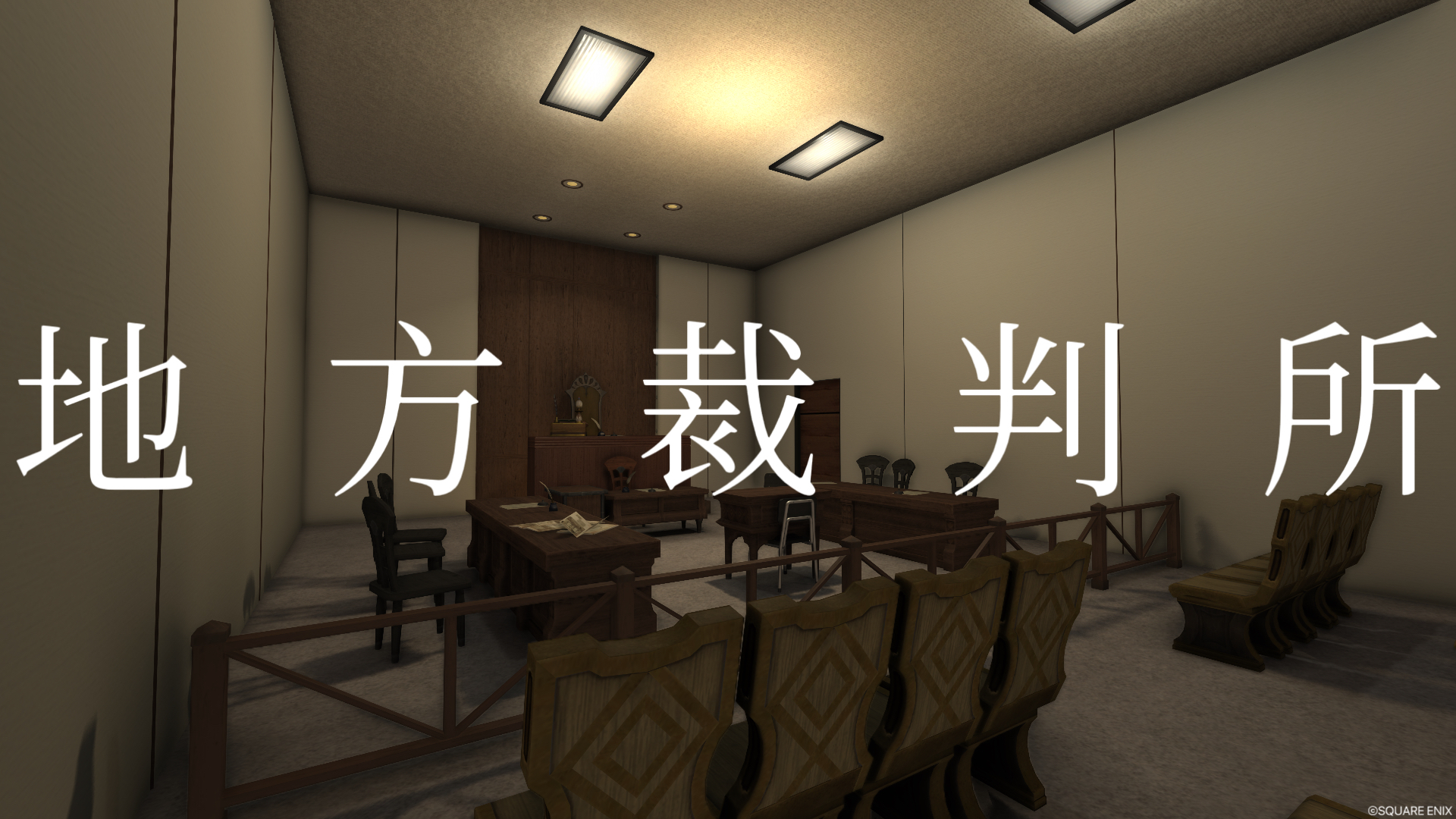 地方裁判所 by るーはん(||BR||)🌐Meteor / Shinryu(||BR||)📍ミスト・ヴィレッジ13区(||BR||)アパルトメント(拡張街)11号室(||BR||)架空の地方裁判所です(||BR||)傍聴したり逆転したりして遊べると思います(||BR||)取調室とあわせて撮るとより楽しいかもしれません - https://studio-xiv.c(||BR||)#21Lu7(||BR||)https://studio-xiv.com/studio/89227/