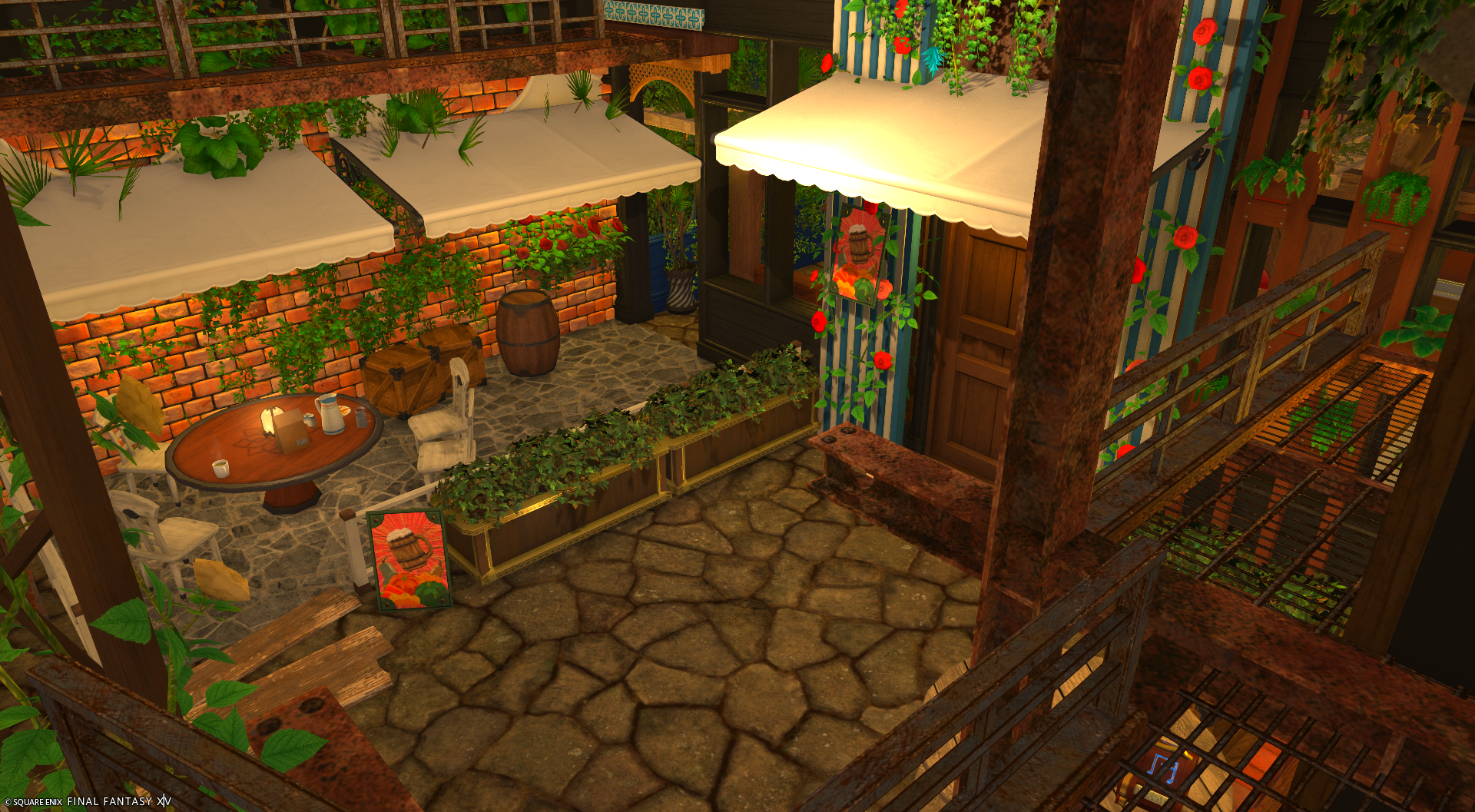 各所に椅子を仕込んでいますので樽や木箱にも座れます。