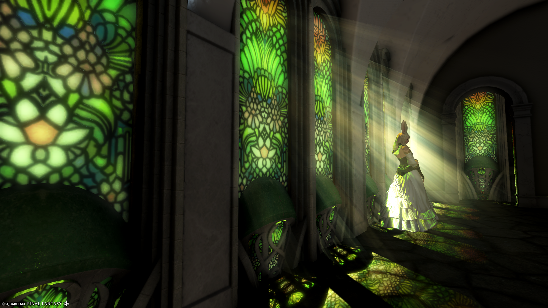 右手:リェー・ギア・ステンドグラスは時間帯によってはかなりの光が入ります。