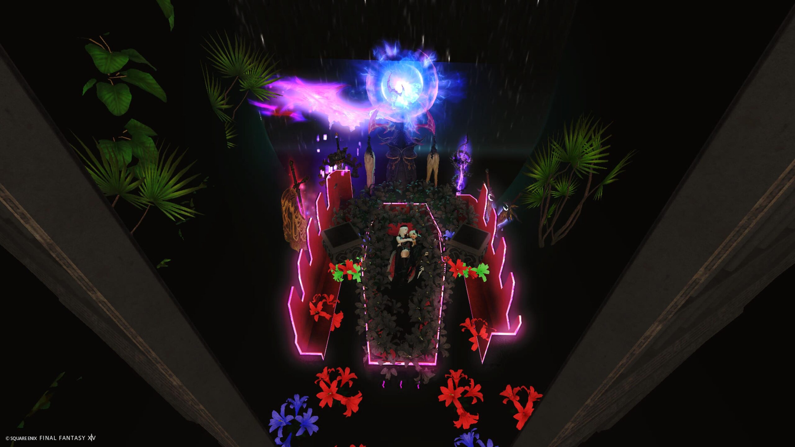 地下は主もSS撮影が好きな為、SS撮影スポットを3パターン作ってます!画像を参考にして頂ければ幸いですが座れる所、眠れる場所あります。エモートの死んだふりを使用していただければお2人でも撮影可能かと思います。