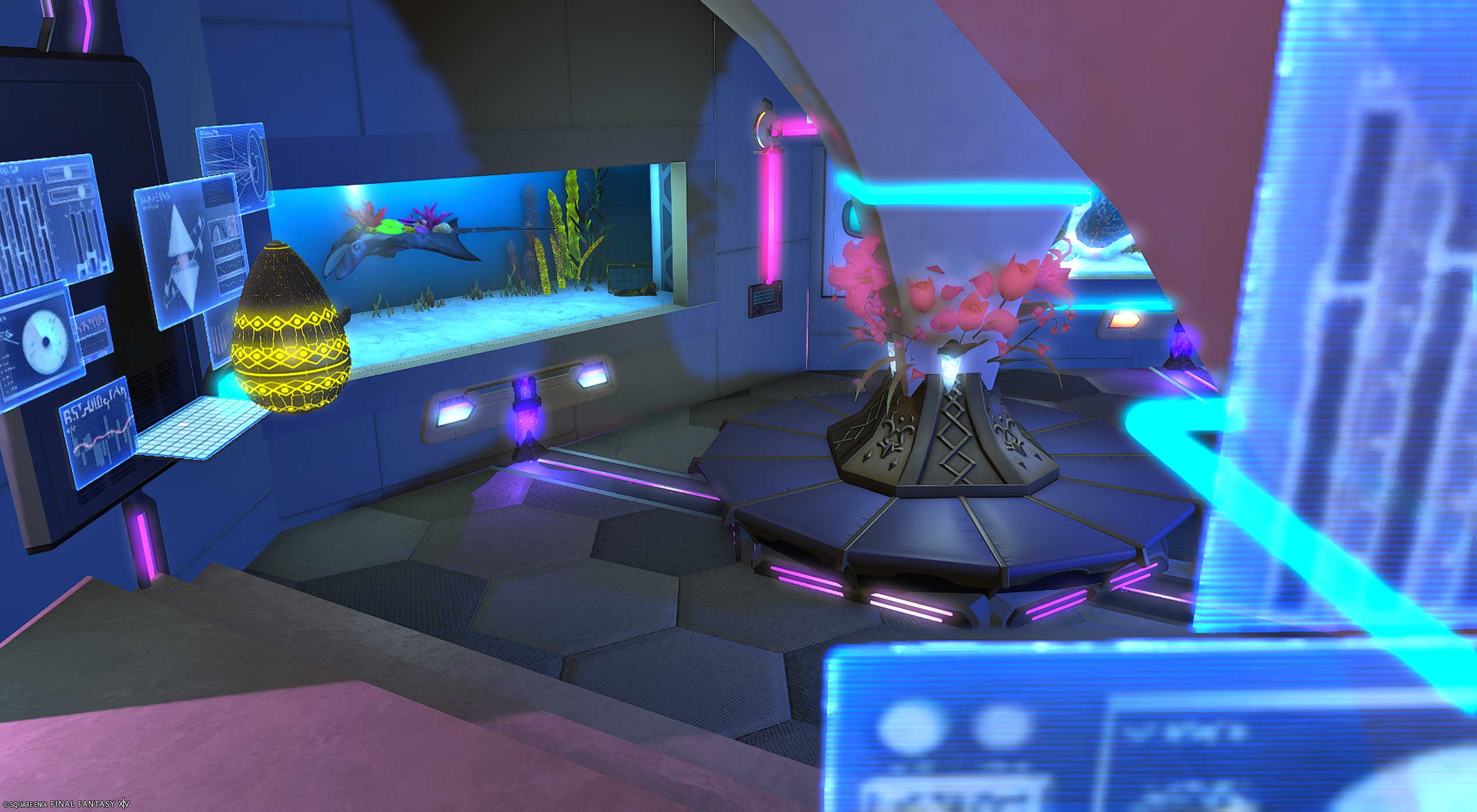 水族館をCyberに改装しました。中央スペースがクールなサイバー空間。左右スペースには休憩も兼ねた優しめな色あいの空間もあります。見学、撮影、投稿ご自由にどうぞ。