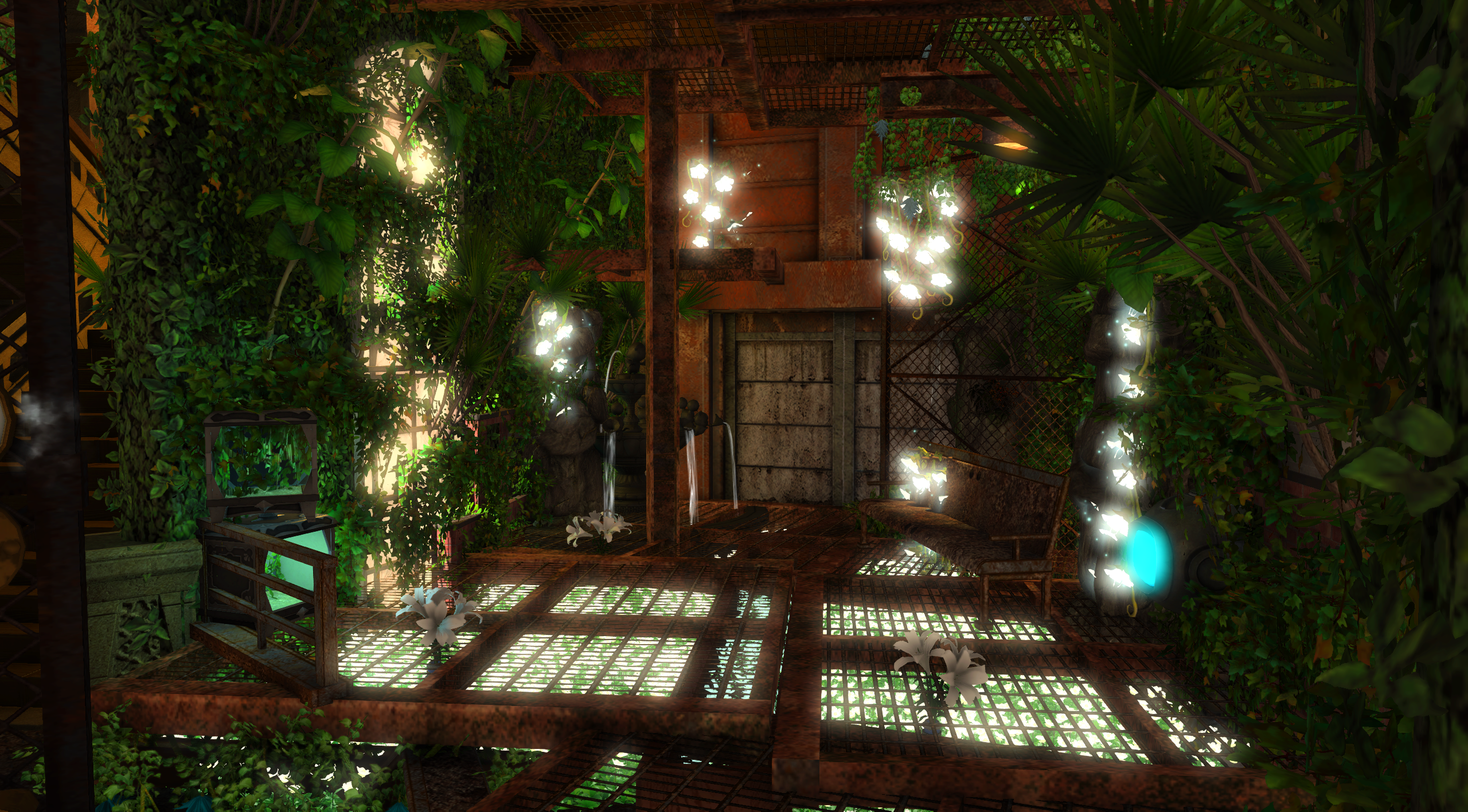 森の中の廃墟 by Lino(||BR||)🌐Mana / Ixion(||BR||)📍ゴブレットビュート16区6番(||BR||)時が過ぎる中で荒廃していった場所(||BR||)人が残した建物をのみこもうとしてる草木(||BR||)ゆっくりと流れる時間の雰囲気をお楽しみください(||BR||) (||BR||)全体的に暗めとなっておりますので明るさなど調整して撮影して(||BR||)#ST_0001(||BR||)https://studio-xiv.com/studio/90047/