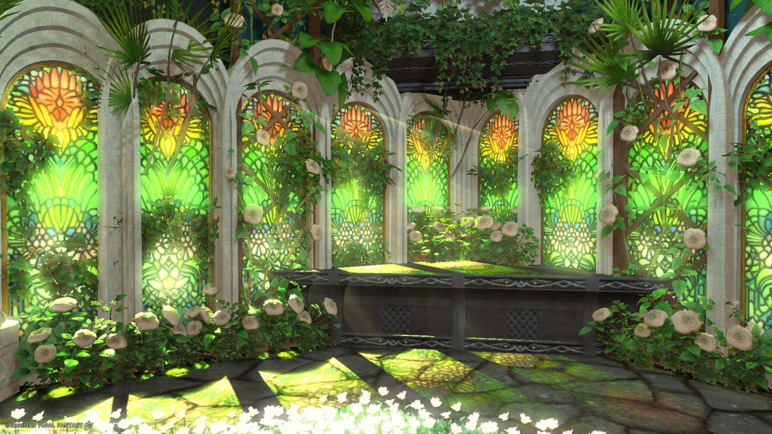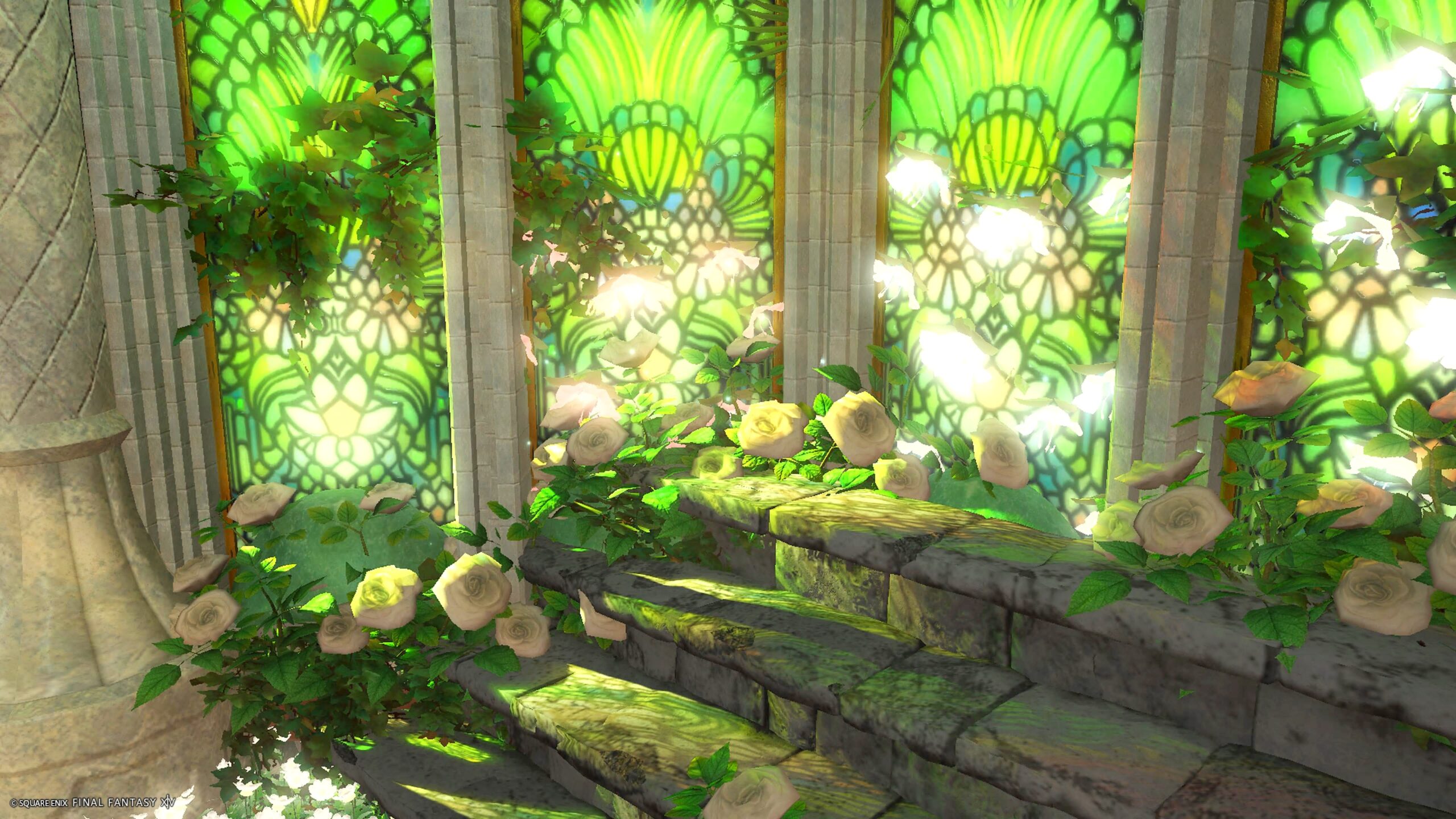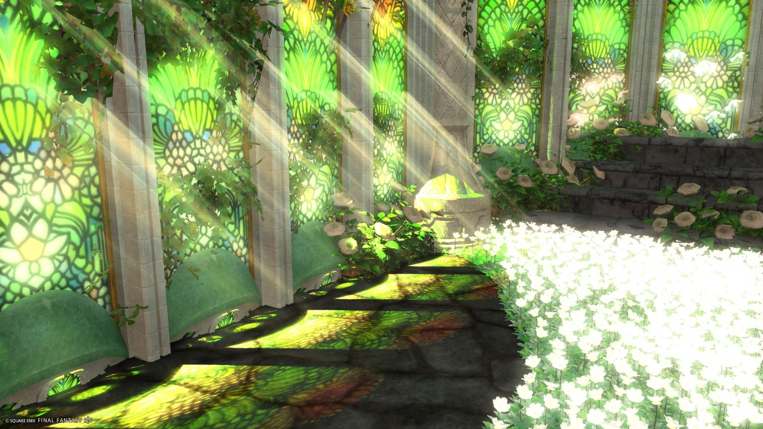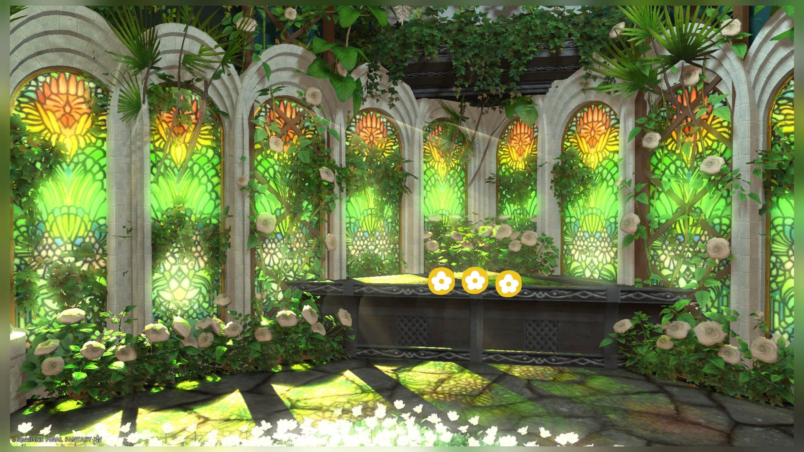 翡翠と白 咲麗 by mel(||BR||)🌐Mana / Hades(||BR||)📍ミスト・ヴィレッジ29区(||BR||)アパルトメント(拡張街)2号室(||BR||)翡翠と白 咲麗(||BR||)翡翠色と白のスタジオ(||BR||)お花マーク 3人寄り添って座れる椅子を(||BR||)仕込んであります。(||BR||)昼の撮影が光りが入り美しくおすすめです。(||BR||)#studiomelU(||BR||)https://studio-xiv.com/studio/90144/