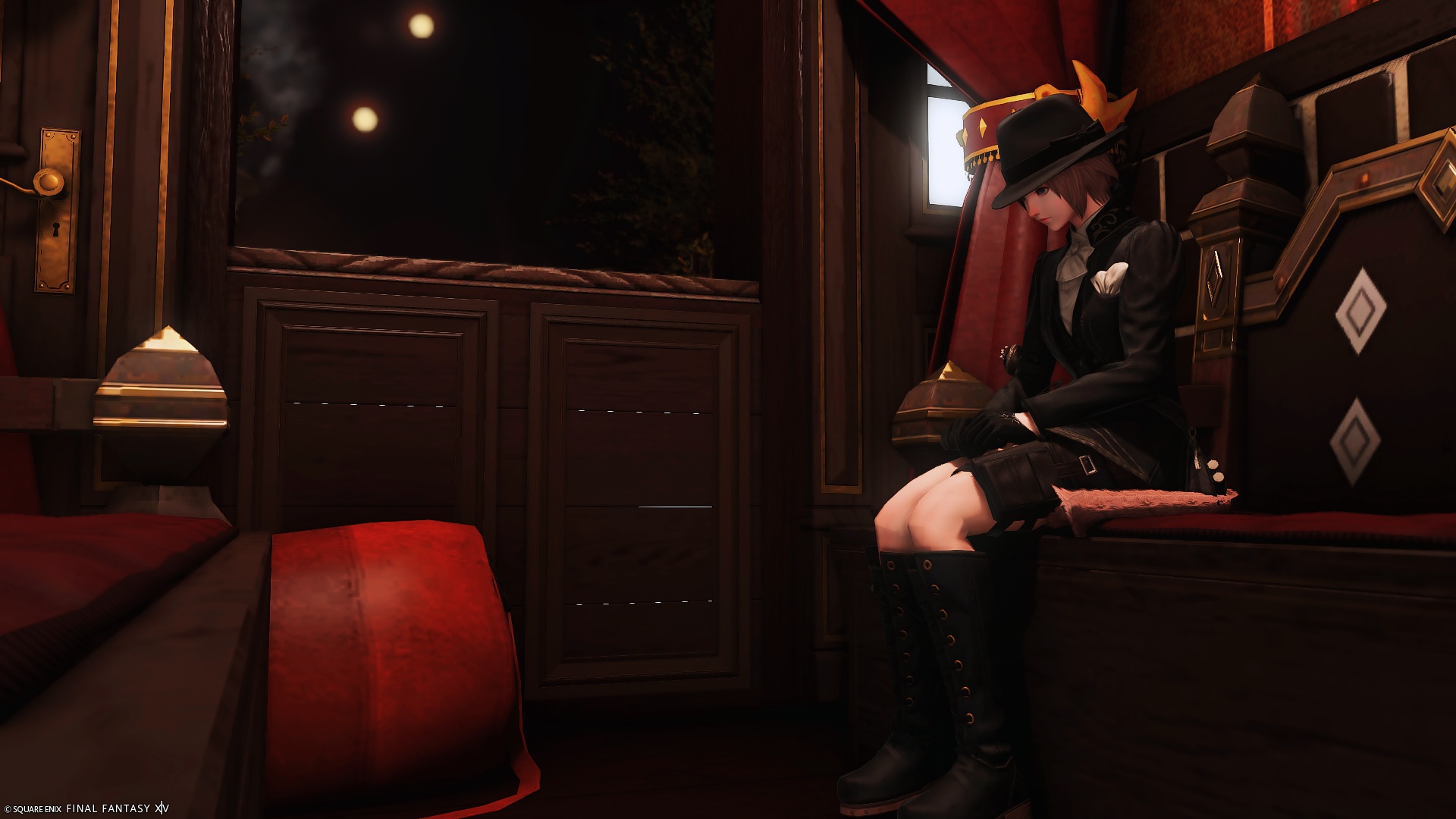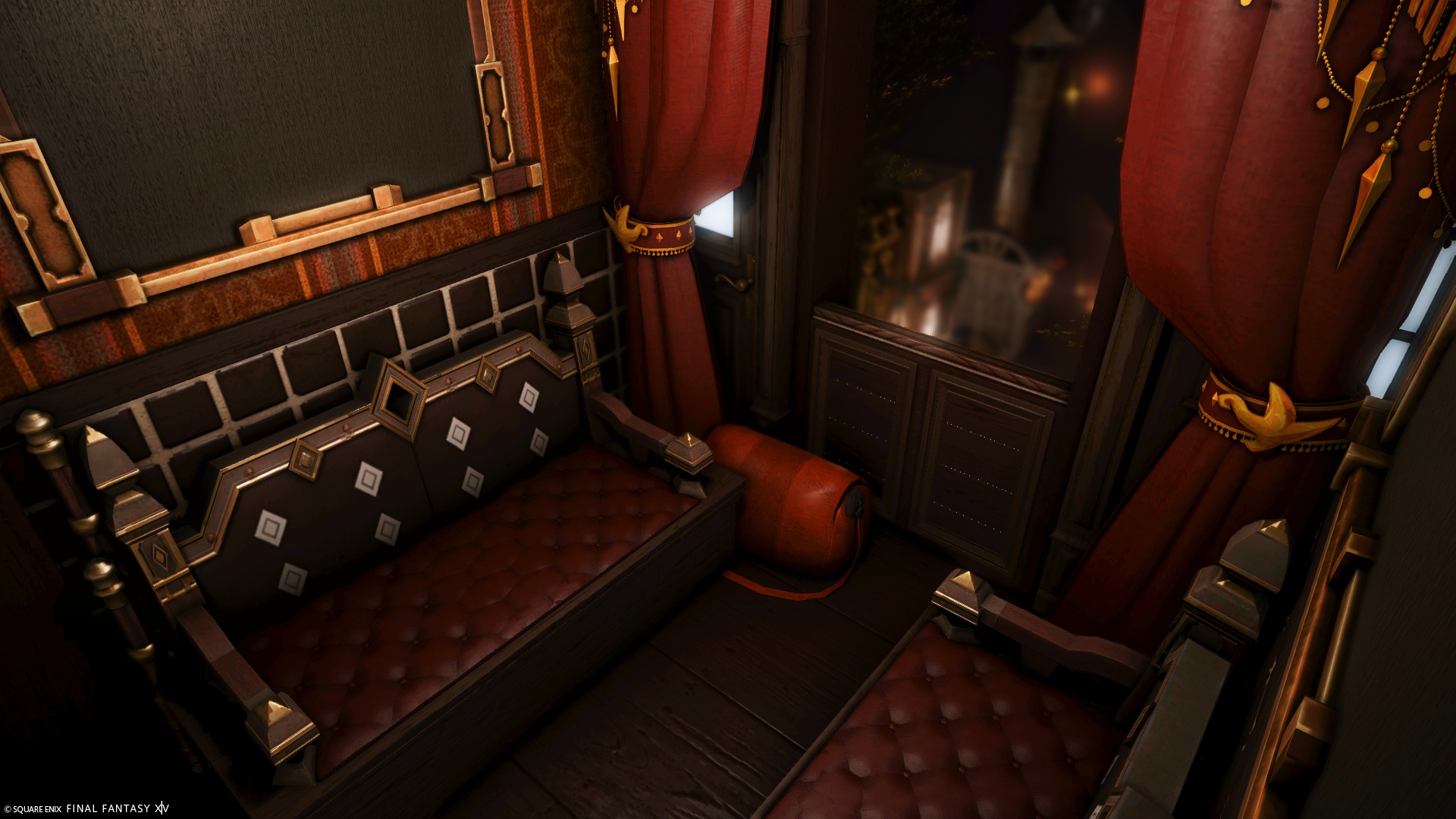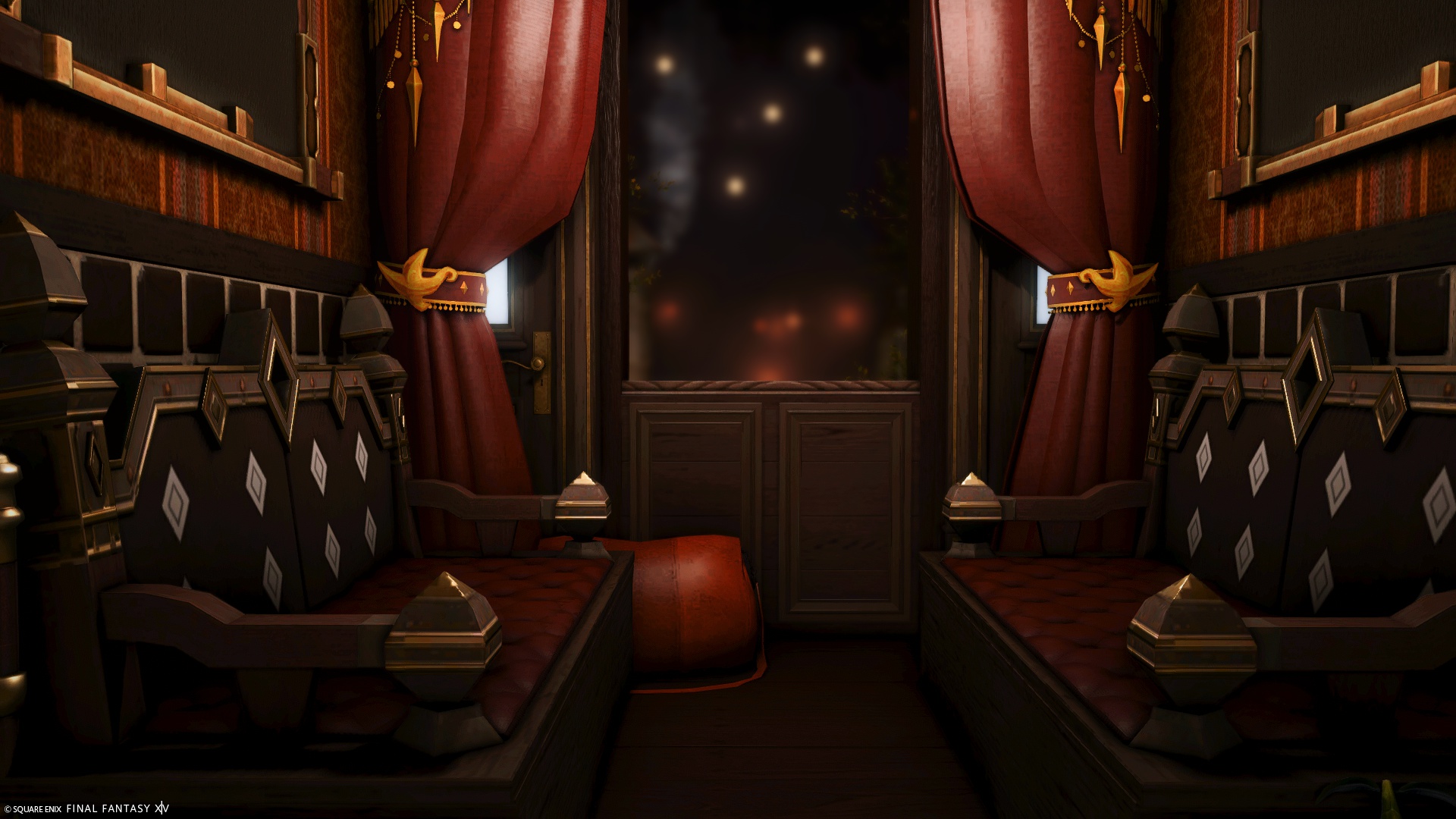 夜行列車 by Clay(||BR||)🌐Mana / Pandaemonium(||BR||)📍エンピレアム2区5番6号室(||BR||)どこか遠くへ旅立つ夜行列車をつくりました。(||BR||)夜景が見える窓は貫通します。落ちないように気を付けてください。(||BR||)※FCハウス個室のため、ハウス内には住人の出入りがあります。ご了承くだ(||BR||)#MagMellHouse(||BR||)https://studio-xiv.com/studio/90537/