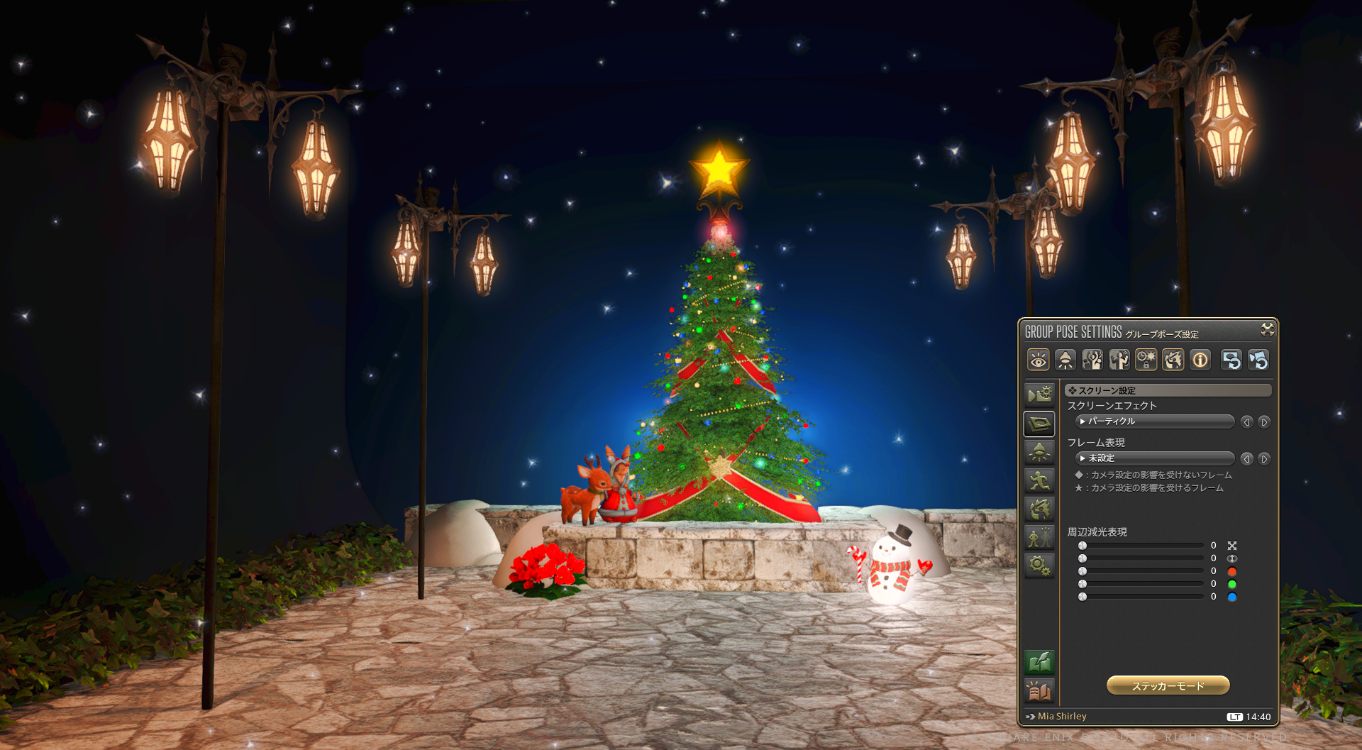 グルポで撮影の時に スクリーン設定→スクリーンエフェクト→パーティクル で撮影をすると雪が降っているようなSS撮影が可能です(画像4枚目参照)