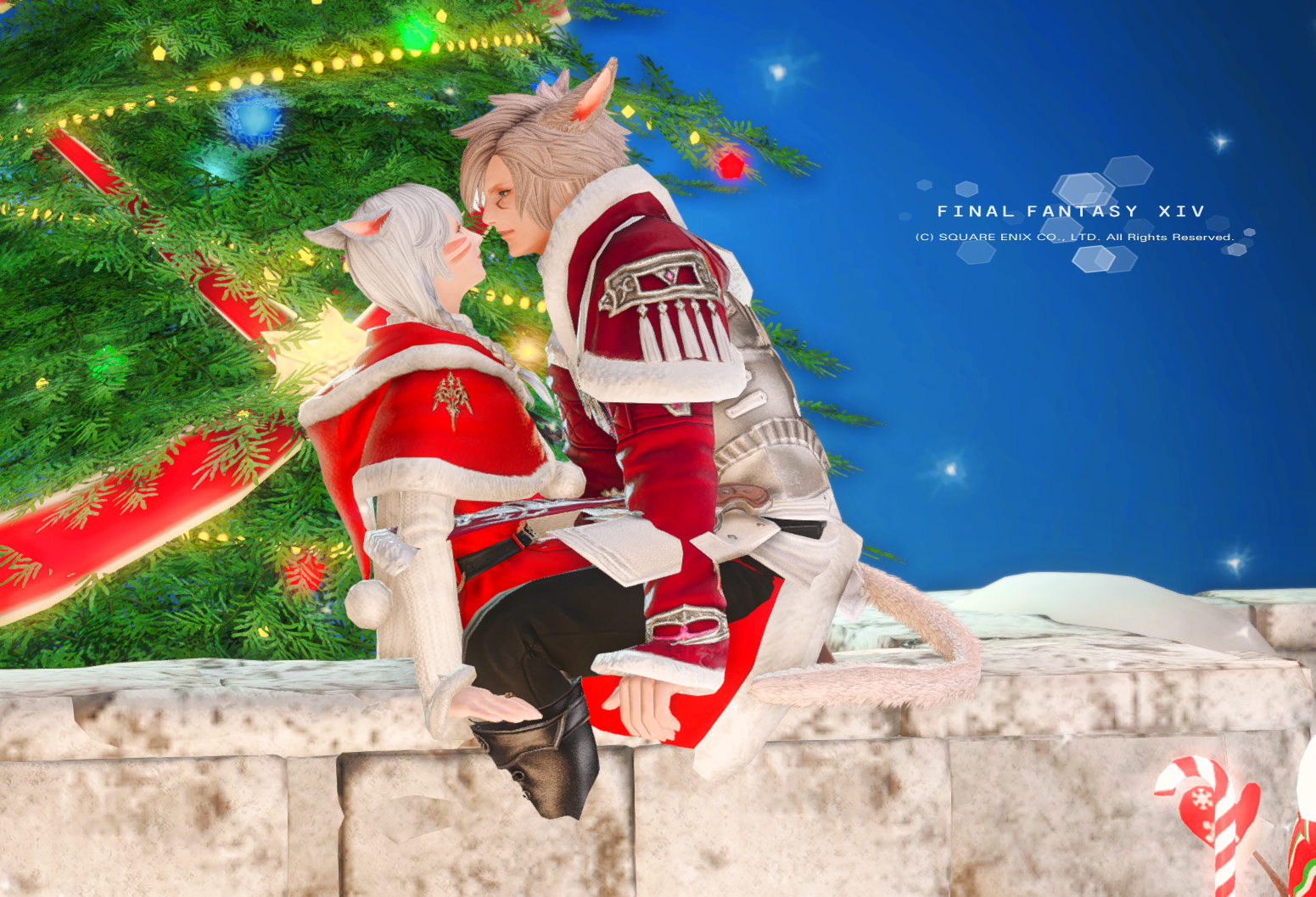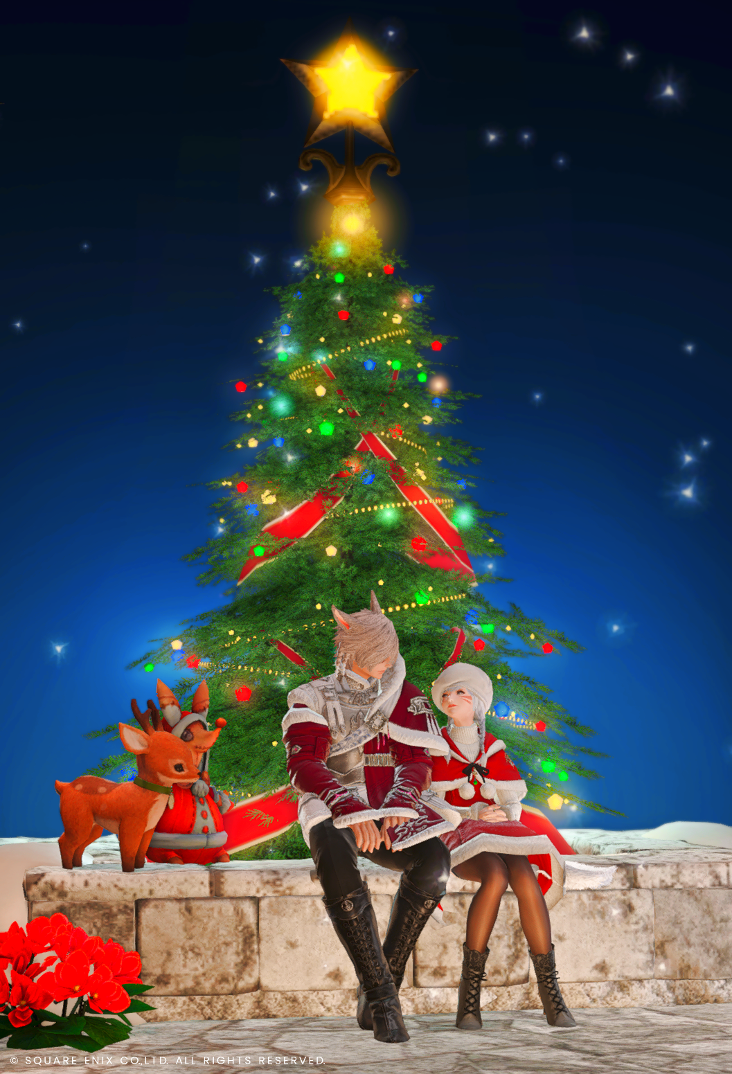 ツリーの前に4人並んで座れる判定があります(距離少し近め)