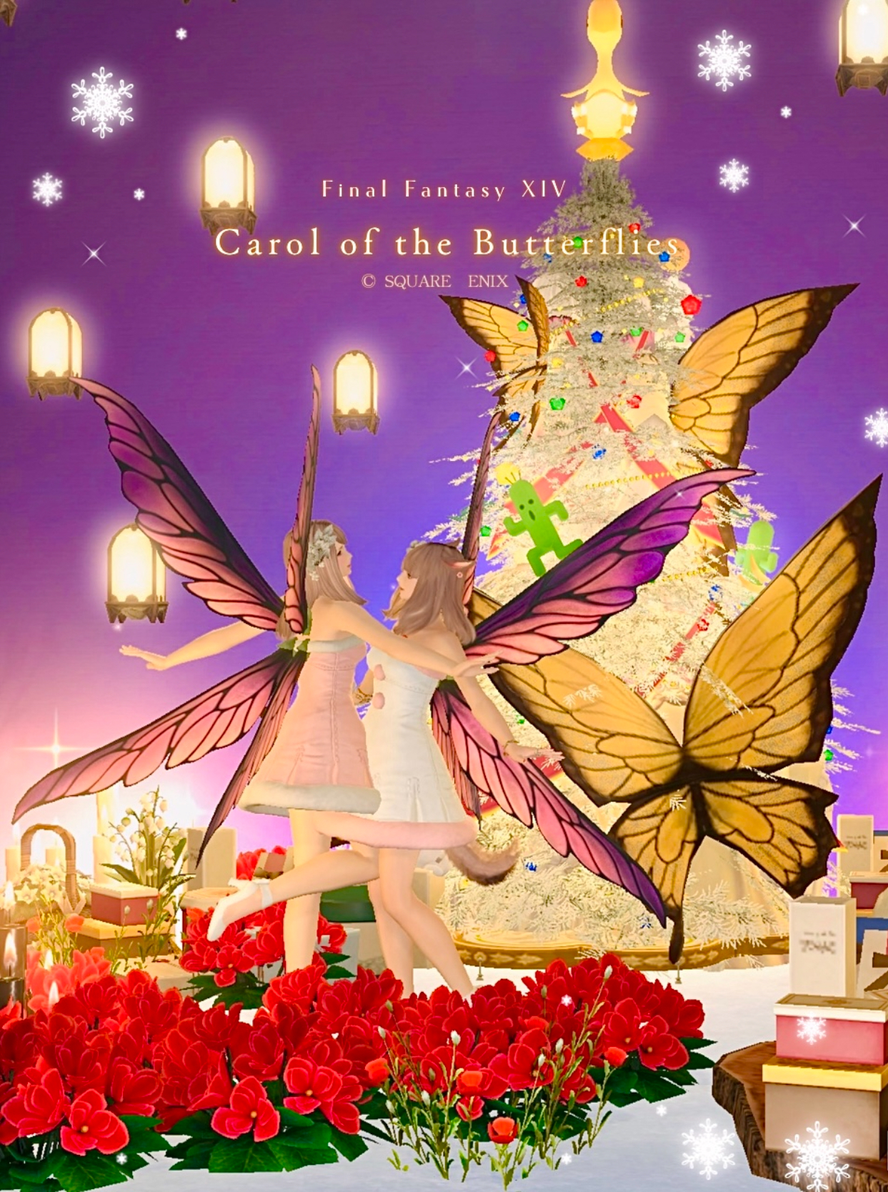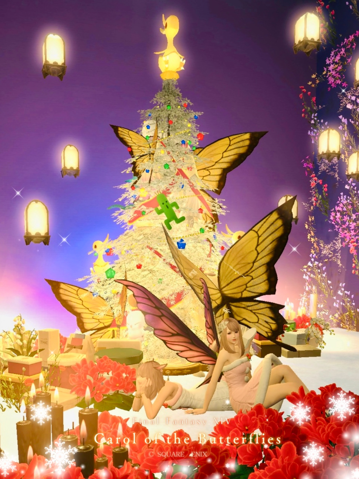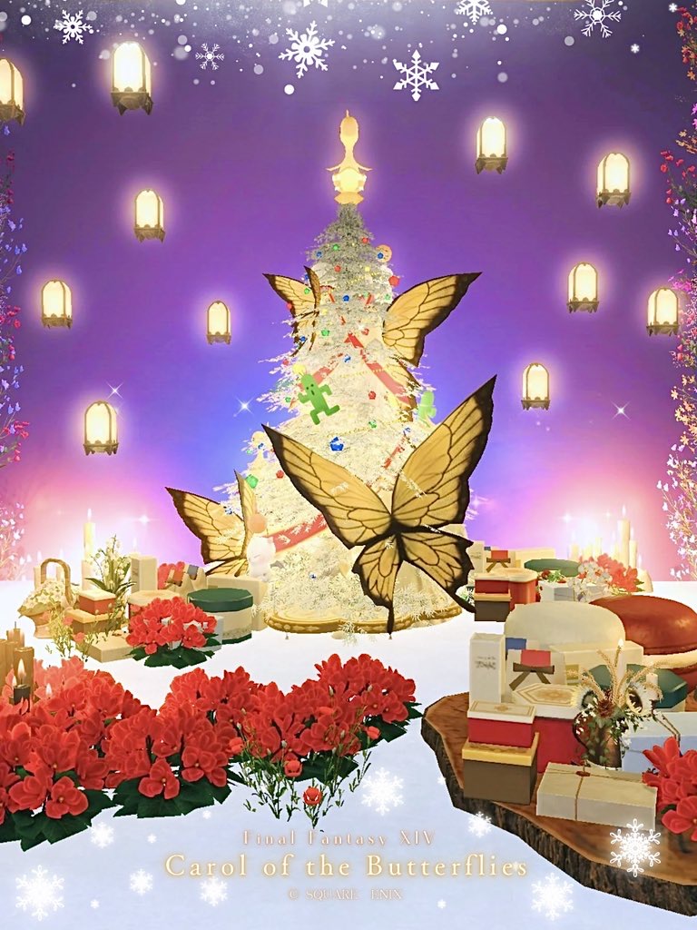 蝶達のクリスマスキャロル by kamiyu(||BR||)🌐Meteor / Yojimbo(||BR||)📍ゴブレットビュート16区(||BR||)アパルトメント15号室(||BR||)蝶が輝くクリスマスツリーを作りました🎄(||BR||)今回、綺麗なスタジオにできたと思います✧*(||BR||)遊びに来ていただけたら嬉しいです⛄️(||BR||)クリスマスツリーの正面(||BR||)#HousingNoah(||BR||)https://studio-xiv.com/studio/90719/