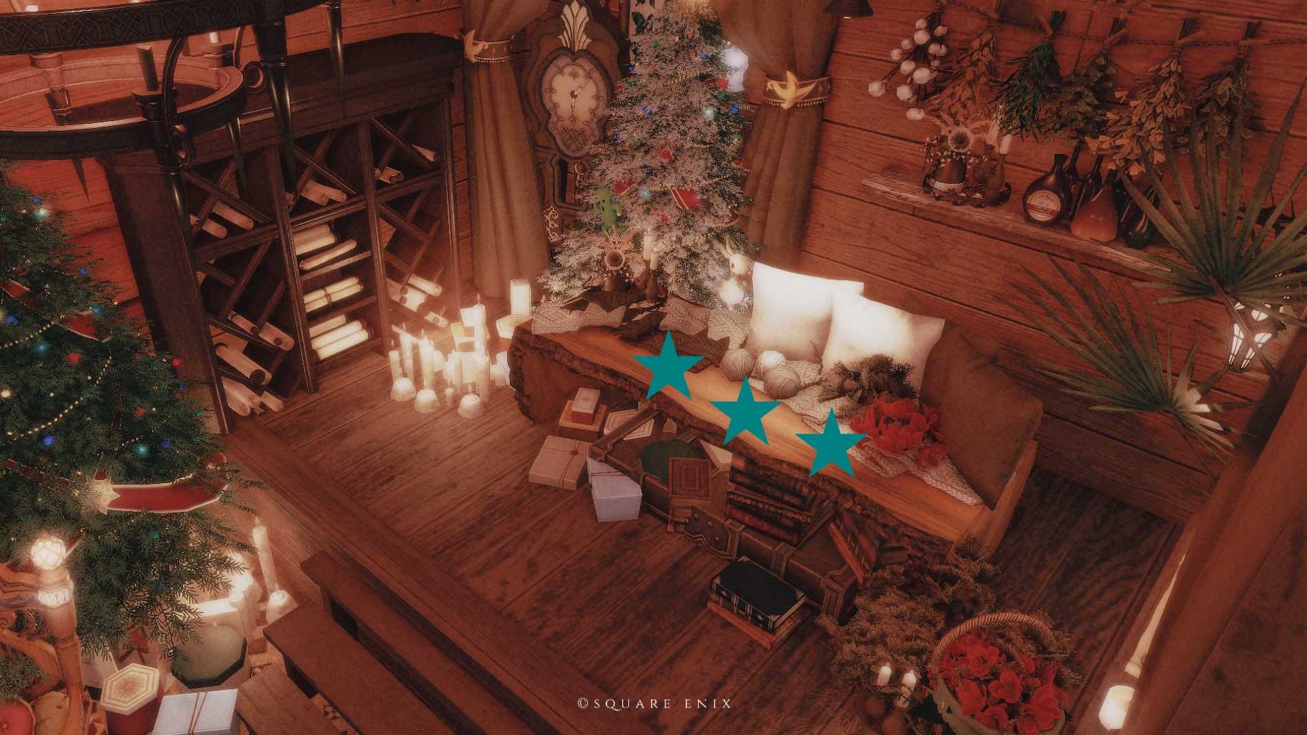 ツリーの優しい煌めきと、木のぬくもりに満ちたナチュラルな雰囲気のお部屋です。