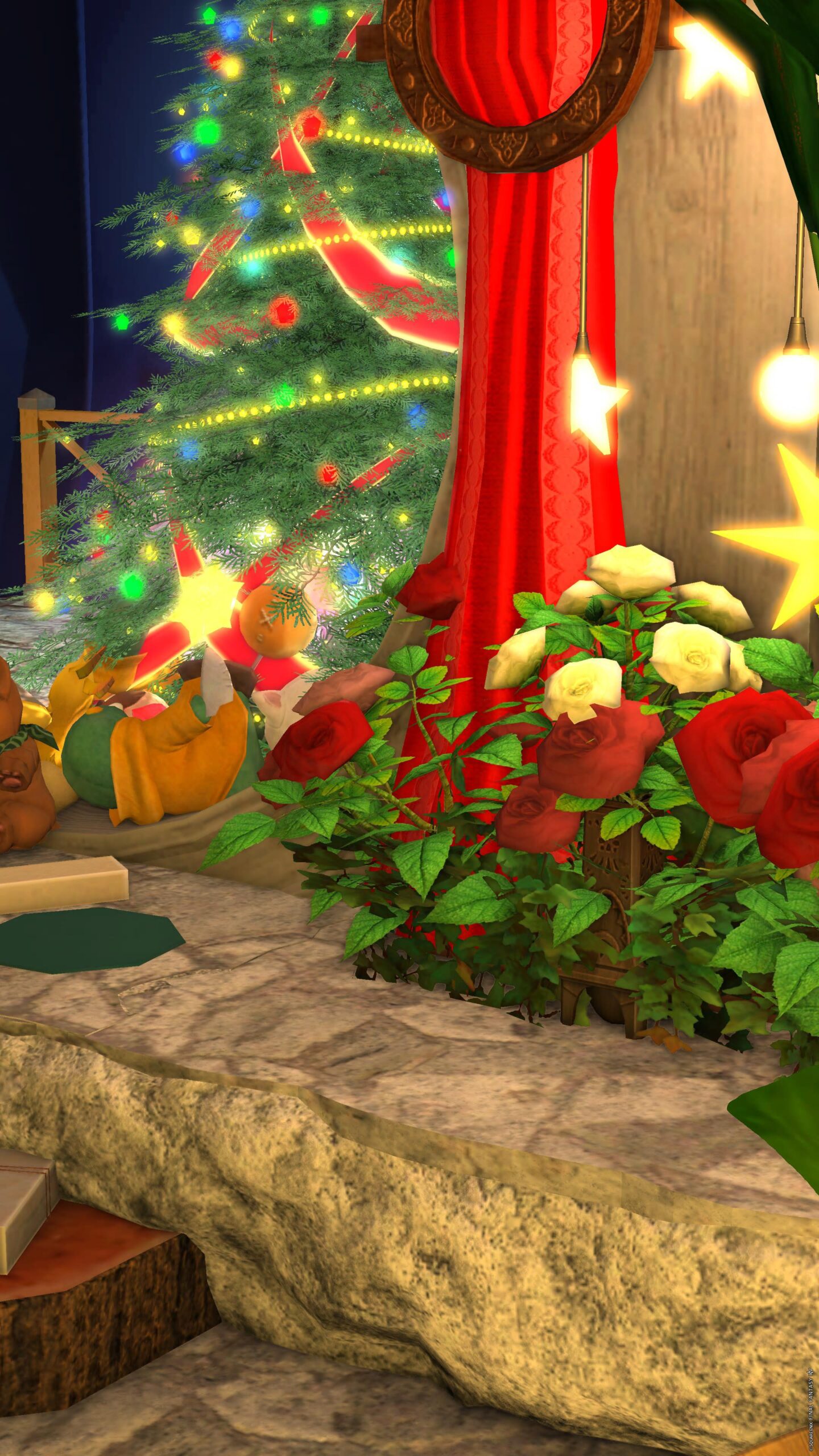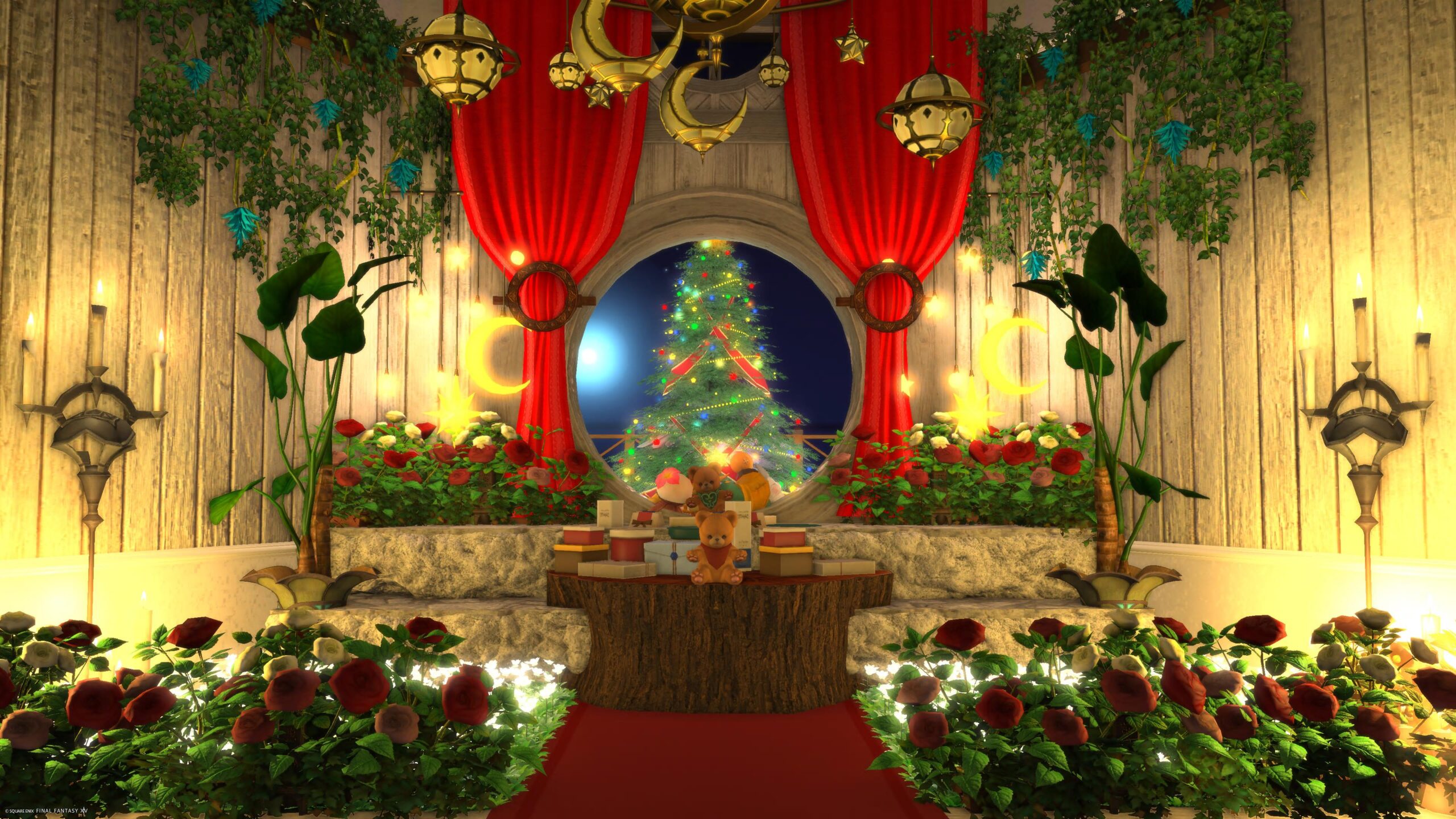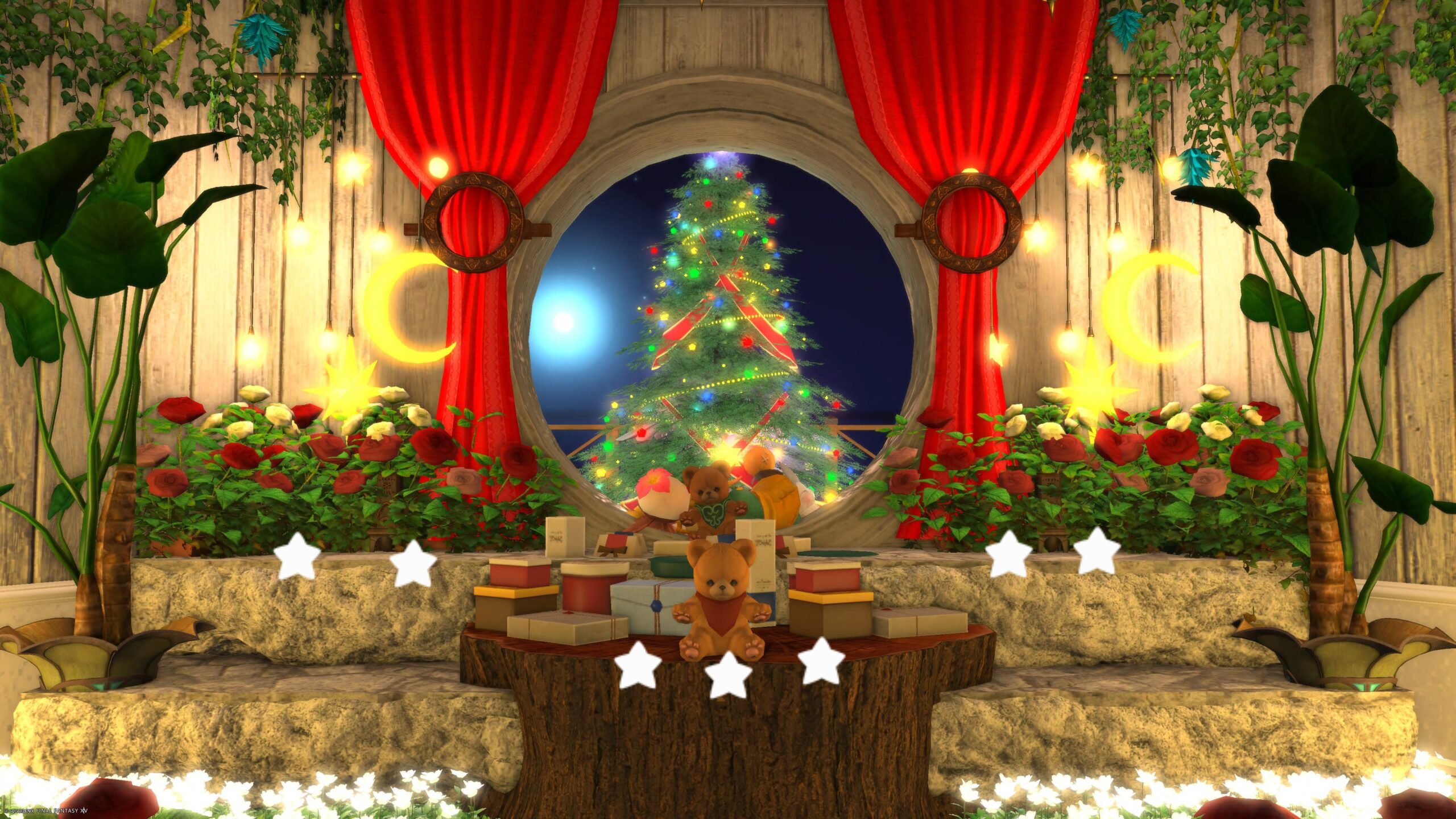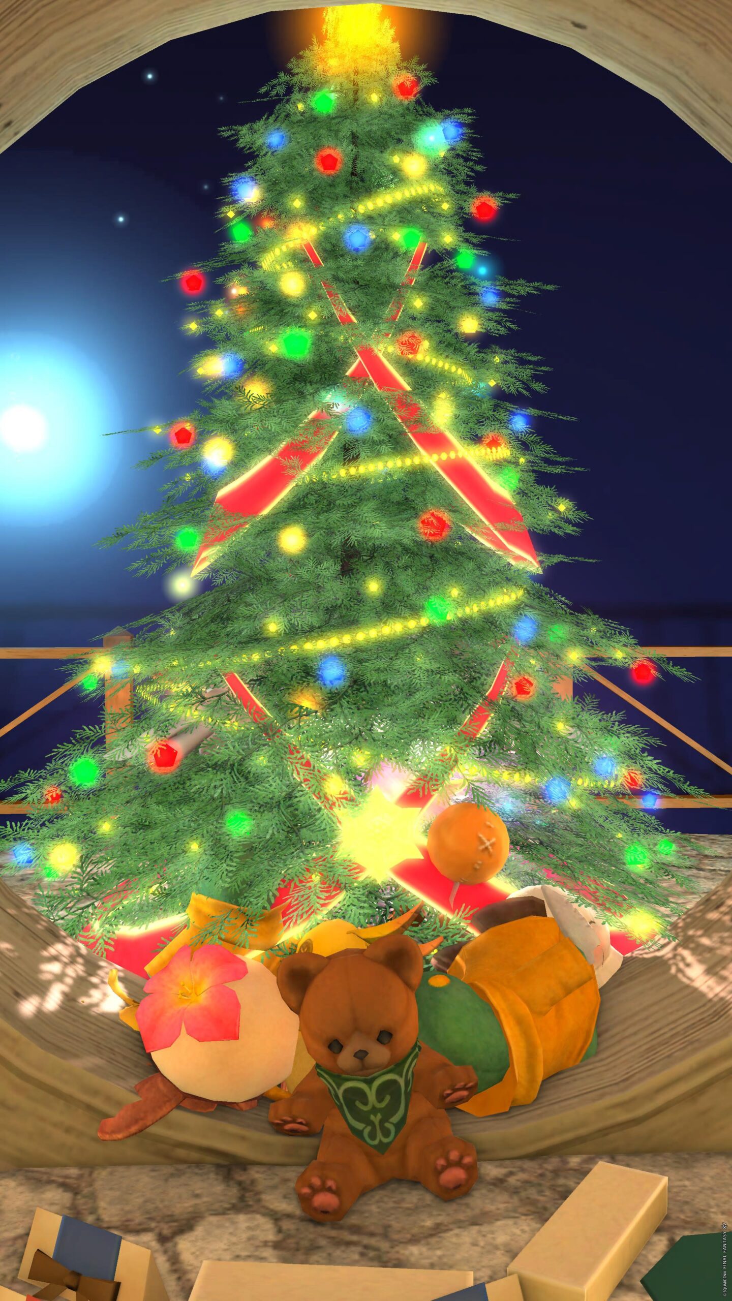 大きな円窓から見えるツリー