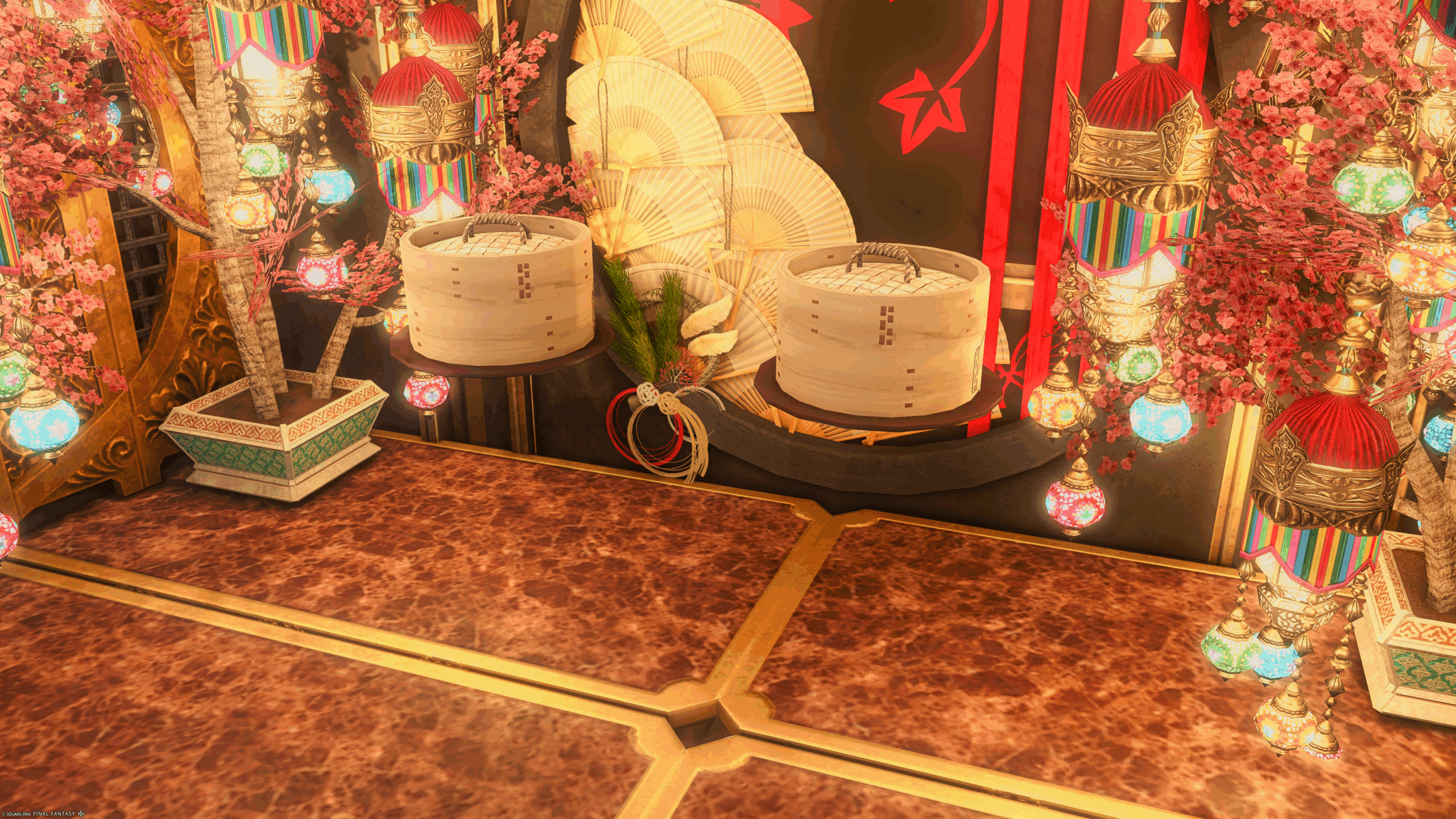 02 by Vio(||BR||)🌐Mana / Anima(||BR||)📍ミスト・ヴィレッジ18区(||BR||)アパルトメント(拡張街)19号室(||BR||)モグコレの耳装備に合わせて蒸籠の持てるスタジオ作りました。(||BR||)いっぱい持ってください!(||BR||)タグ付けてくださると嬉しいです。(||BR||)#viohousing(||BR||)https://studio-xiv.com/studio/91304/