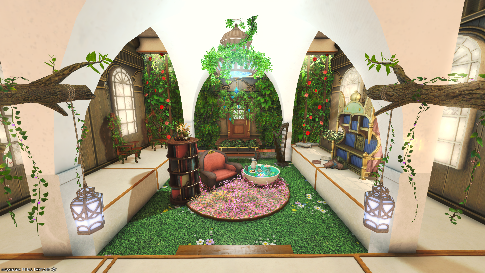 森の中庭 by Acyl(||BR||)🌐Elemental / Garuda(||BR||)📍ミスト・ヴィレッジ17区23番1号室(||BR||)自分用に作成したハウジングです。(||BR||)使用人のいない屋敷の中庭を作りたかった為、窓は割れています。(||BR||)本の近くに寝転がれたり、橋の上に座れたりします。(||BR||)ご自由にどうぞ!(||BR||)#AcylsHouse(||BR||)https://studio-xiv.com/studio/91497/