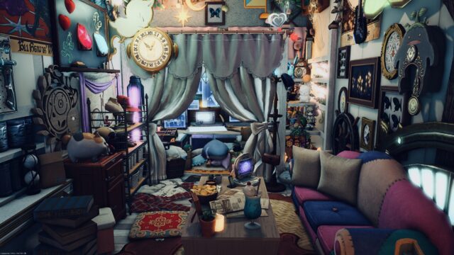 氷のエフェクトがクルクル回るスタジオです。昼は背景の窓の部分が光ります。(1,3枚目昼、2,4枚目夜です。)