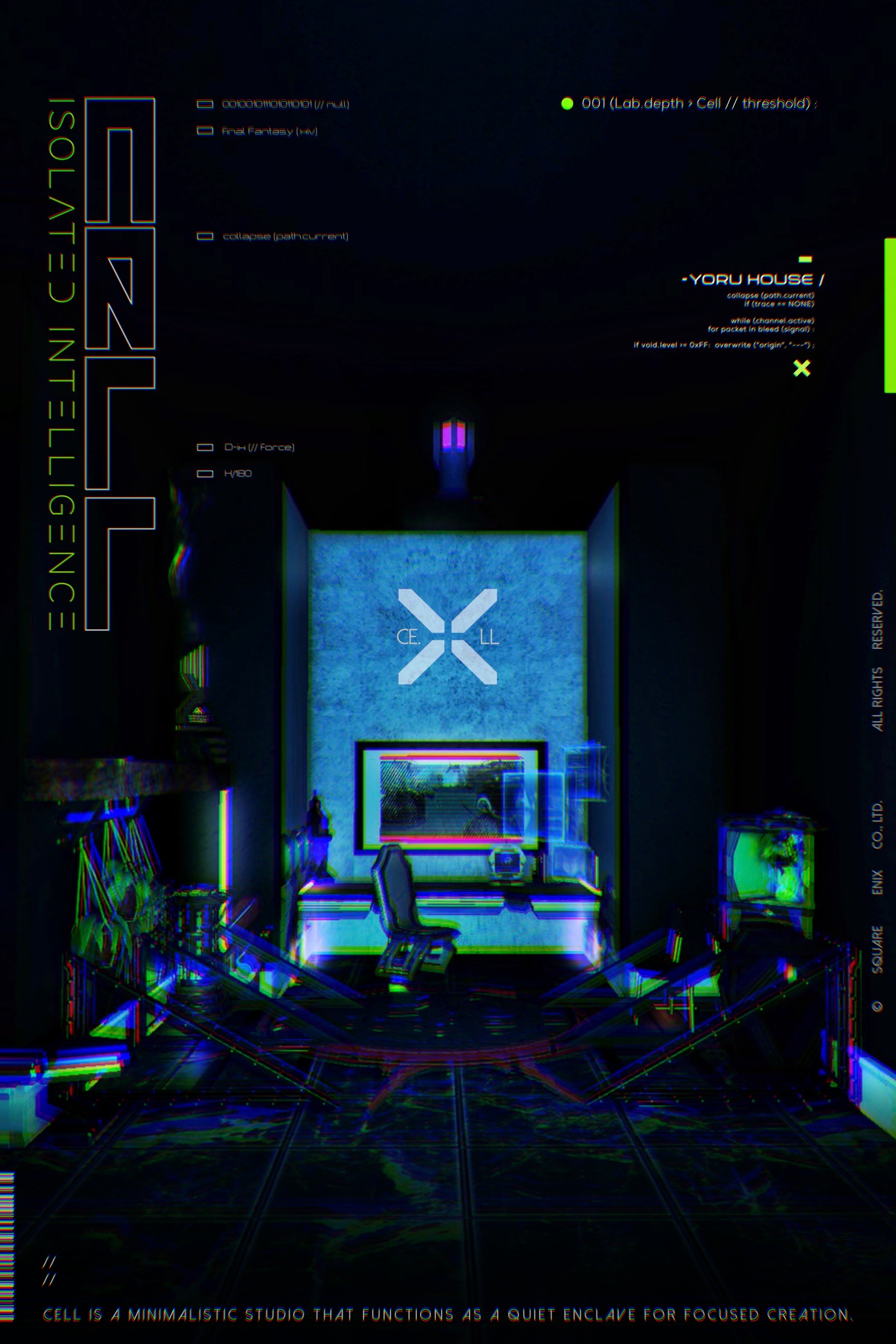 CELL by Moju(||BR||)🌐Elemental / Carbuncle(||BR||)📍エンピレアム20区58番1号室(||BR||)CELL(||BR||)正面の絵が角度で変わるかも…?(||BR||) (||BR||)#YoRu_house(||BR||)https://studio-xiv.com/studio/91743/