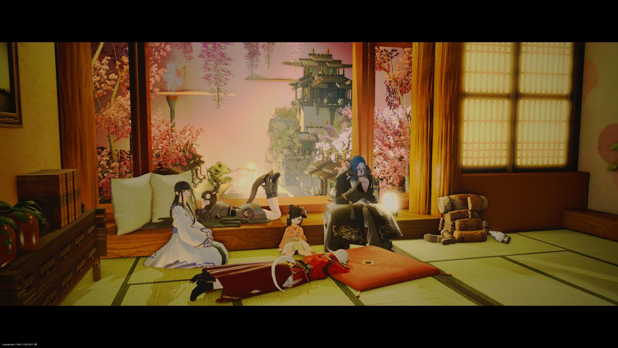茜の余白 by KL(||BR||)🌐Meteor / Shinryu(||BR||)📍エンピレアム2区34番(||BR||)茜色の空を見ながら、忙しい毎日をスッと忘れられるそんな宿。(||BR||)城下町を見下ろしながら一休み。(||BR||)#茜の余白(||BR||)https://studio-xiv.com/studio/91877/