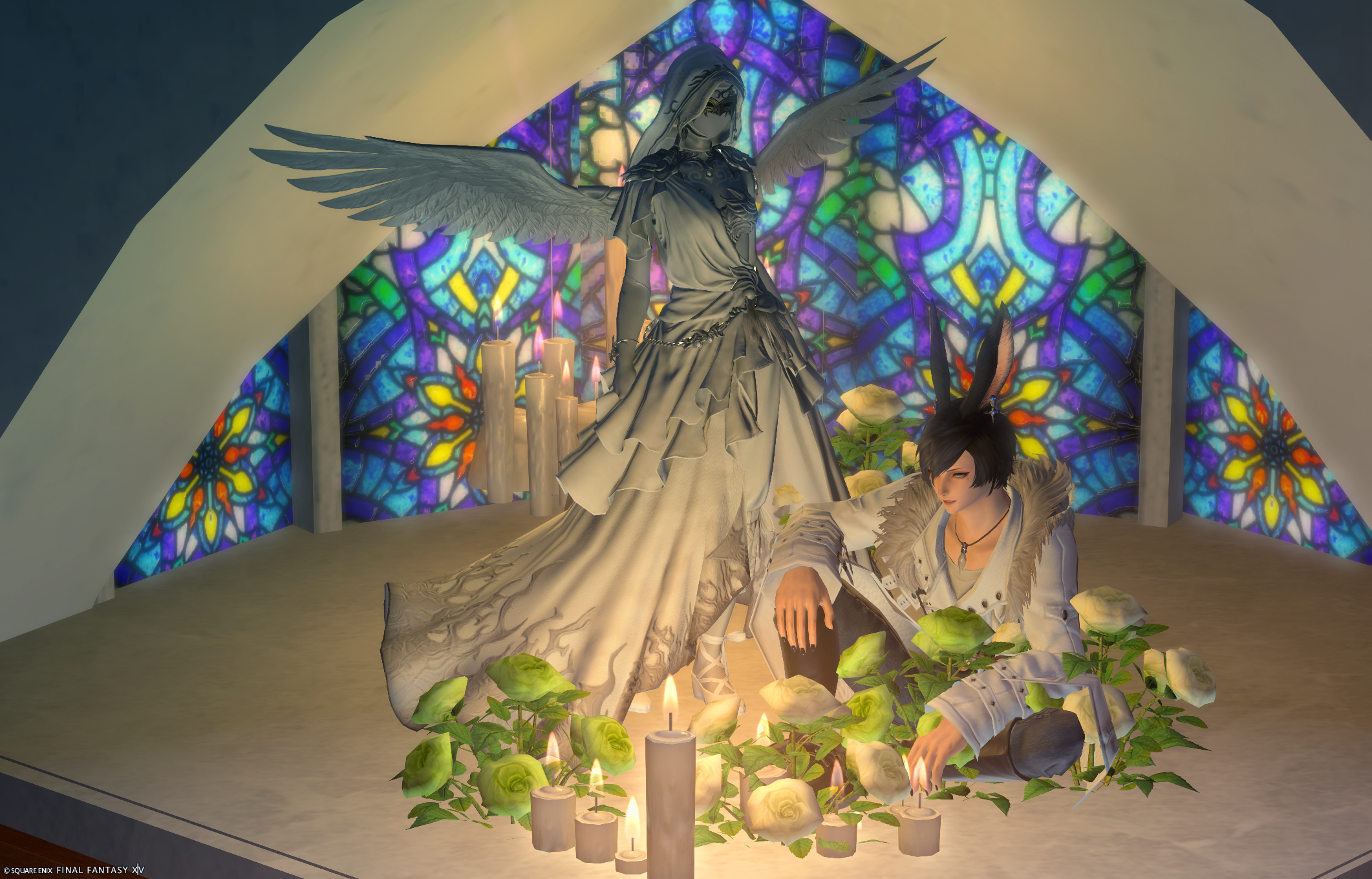 ※マネキンを使ったハウジングです!マネキンの名前がでまくると雰囲気が台無しなので、もしデートなどで使う場合は、最後の写真の通り 「キャラクターコンフィグ→ネームプレートのプリセット→NPC→ターゲット時」と設定してくださいますと本来の情景になります。お手数おかけします!SS撮るだけなら写りませんので気にしないでください!