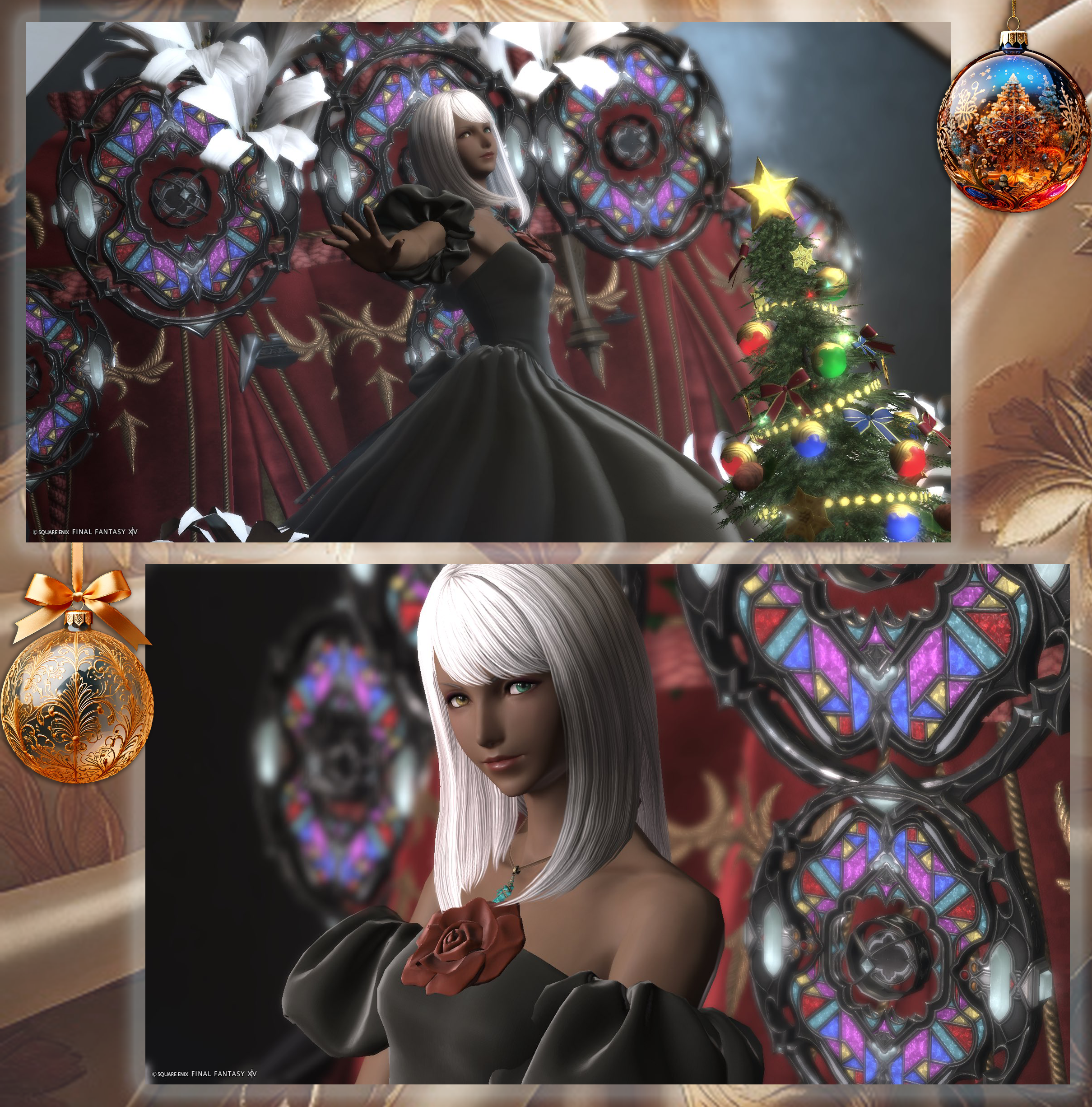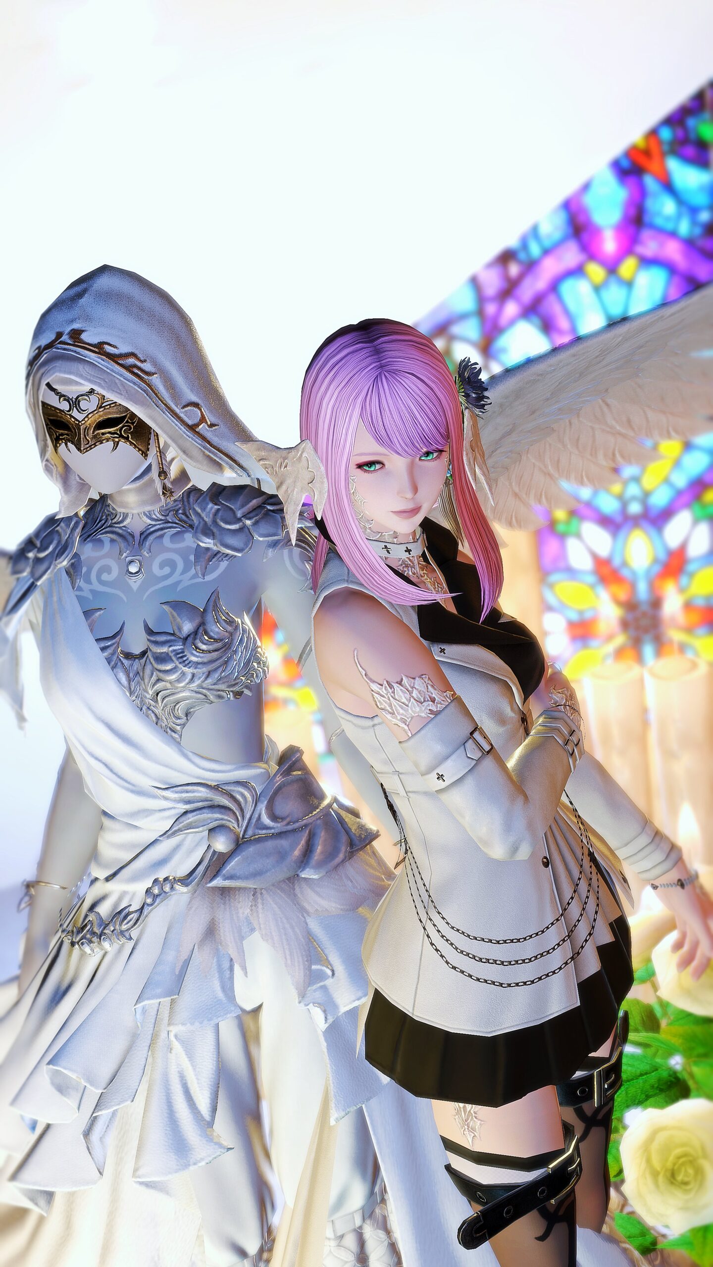 写真7枚目:利用者様が、天使とステンドグラスを大胆に切り取って、非常にセンスあふれるSSを撮ってくださいました!頭上の天使にはファーストライトアクセサリ全種装備させていますので、試着できますよ!