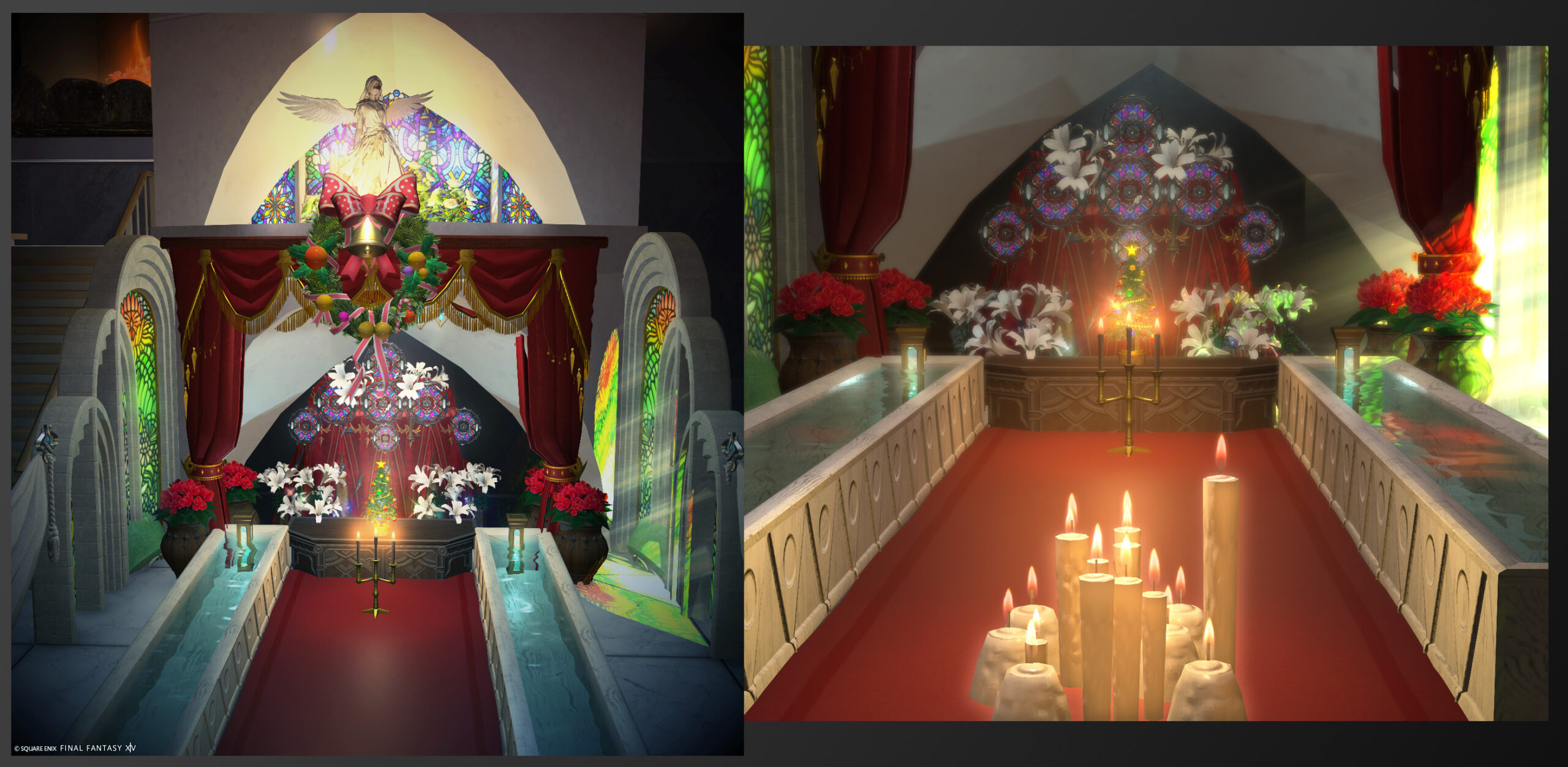 写真8枚目:利用者様が柔らかな光に照らされた天使を撮ってくださいました。祭壇と赤魔装備の相性も抜群です!祭壇前と天使の前で雰囲気が全く異なる写真が撮れます、試してみてね!