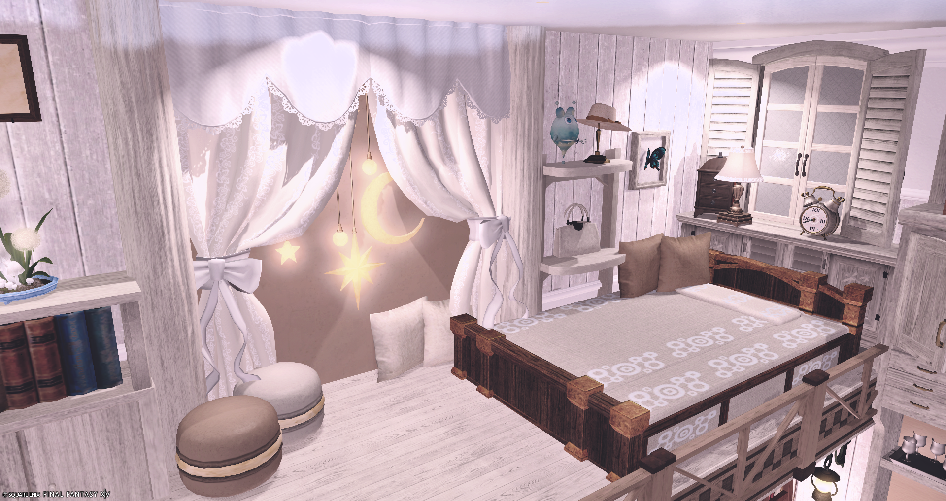 白と茶色が基調の可愛いお部屋というオーダーを元にハウジングさせて頂きました。