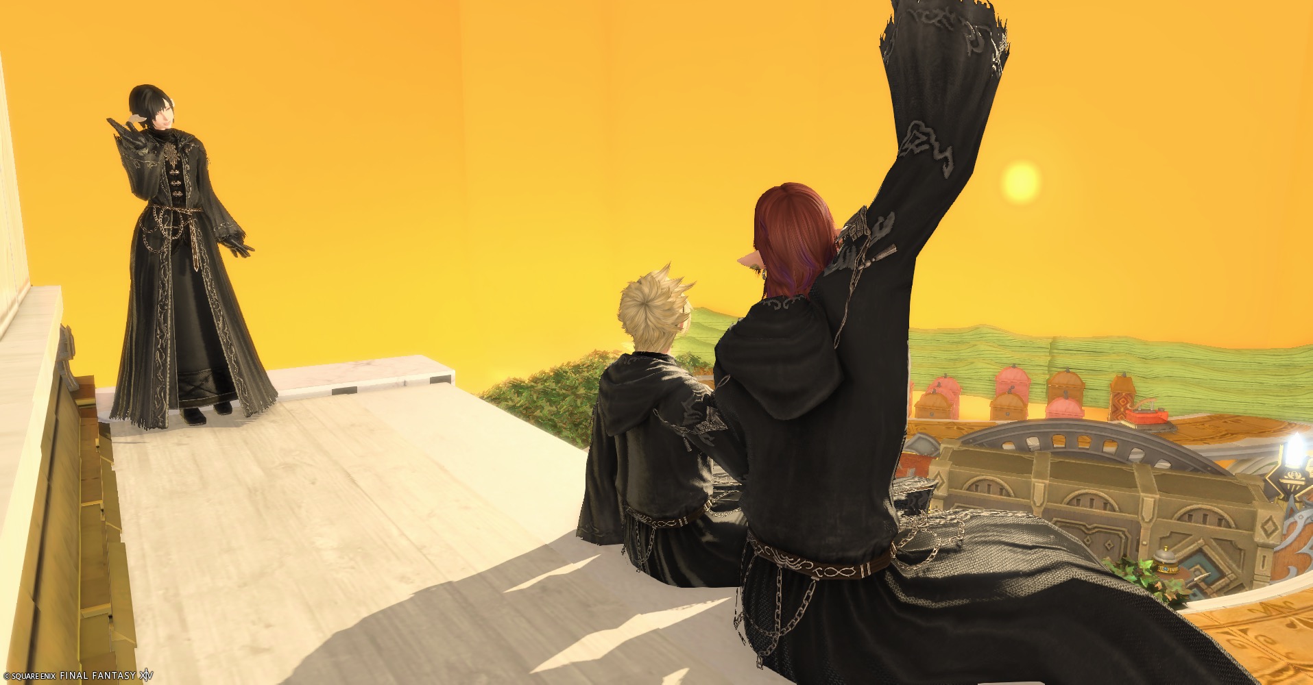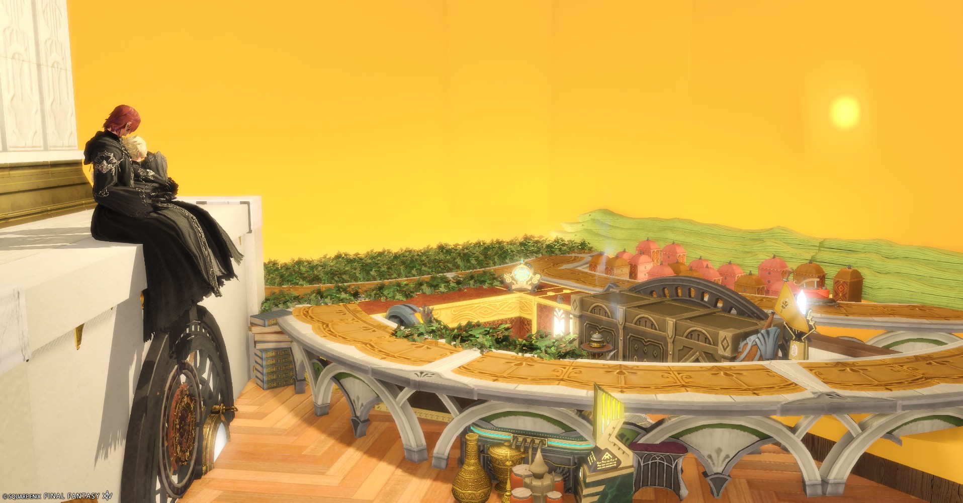 時計塔の上は座ったり寝転がったり出来るのでお好きなミラプリで"彼"たちが見た景色を楽しんでください。(照度はMAXにしてある為調整をお願い致します)時計塔の上には線路などを使ってジャンプしていただいても登れますし原作通り奥からも登れます。