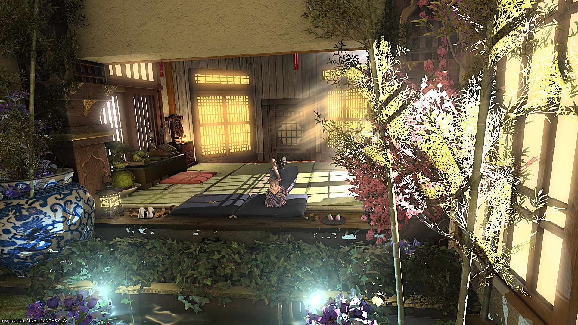 紺の座布団は座ったり寝転んだり2人で出来ます。