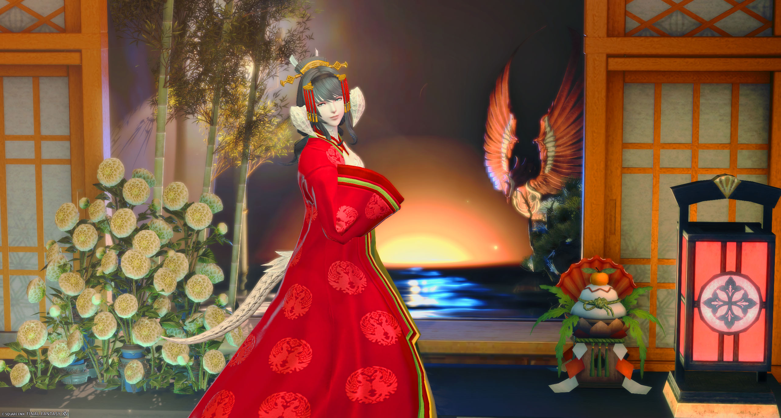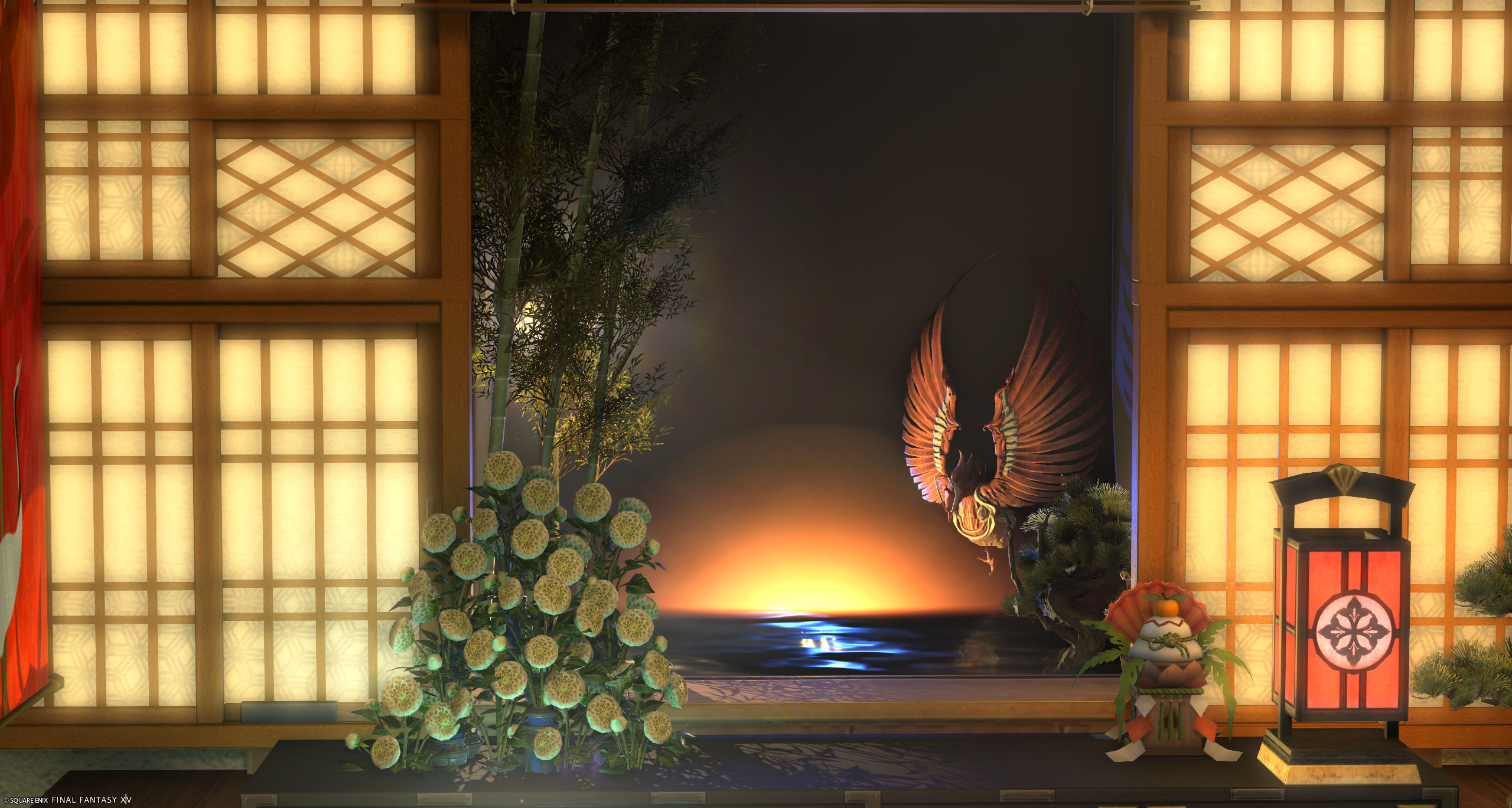 夜明けの海に朱雀が舞う景色を作りました!