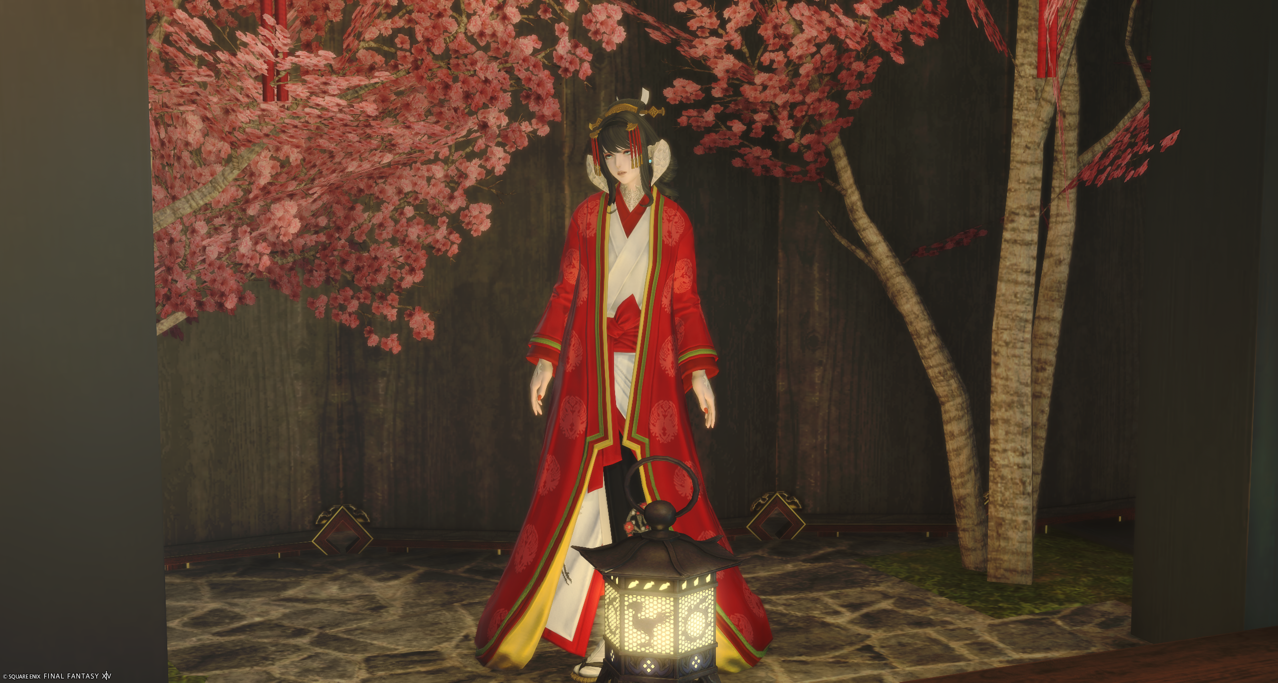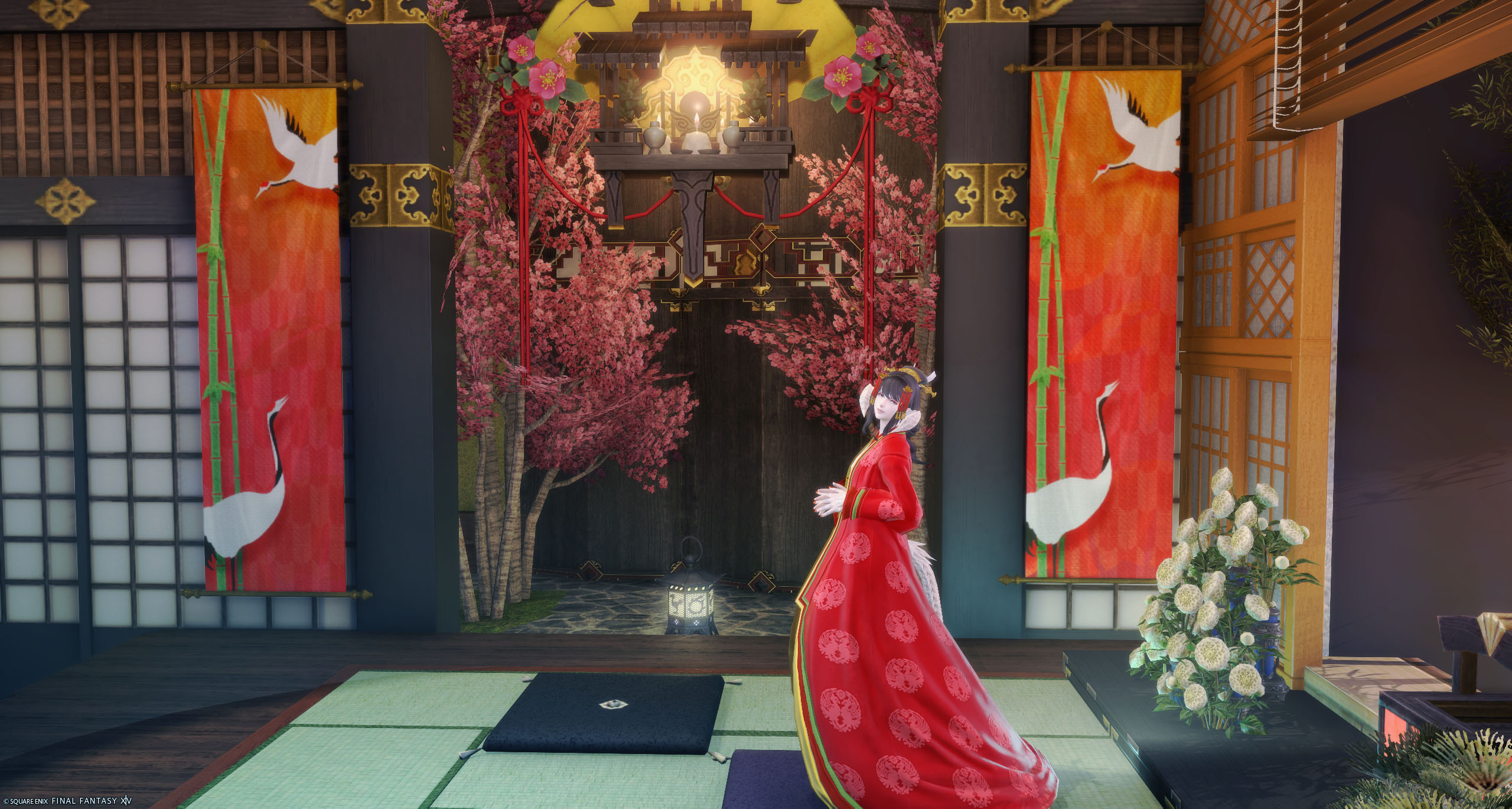 左側には神棚と桃の花があります。