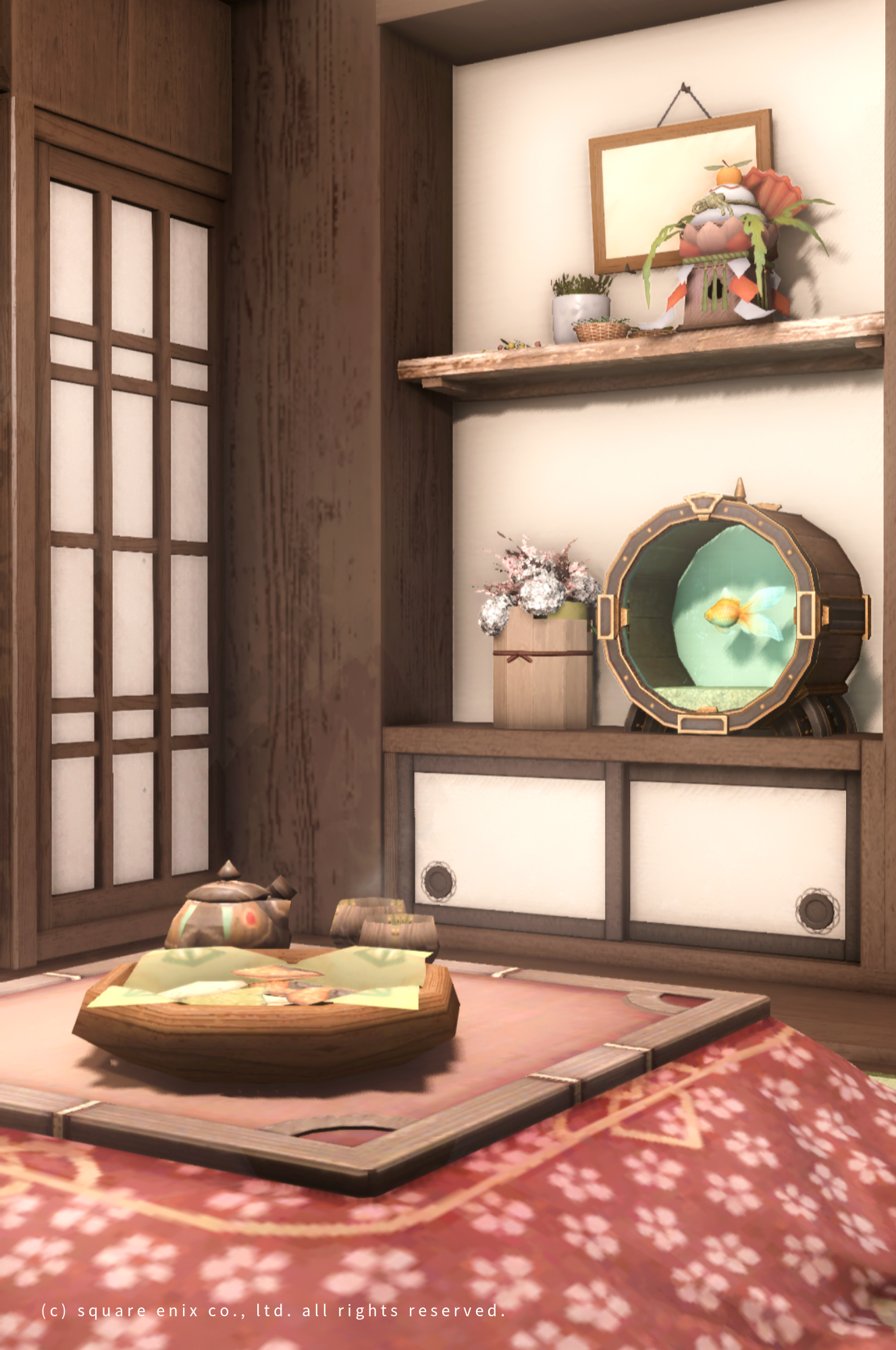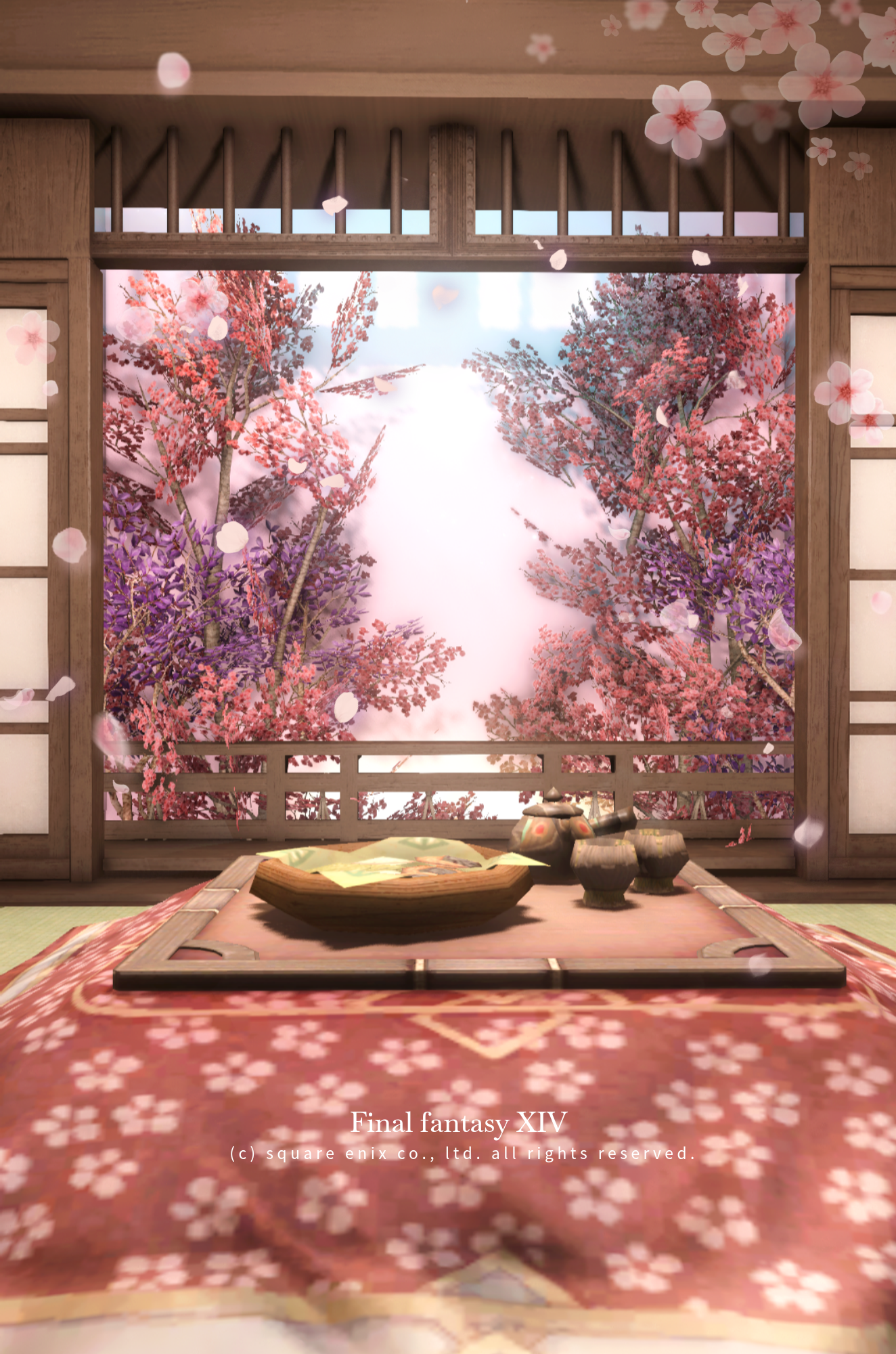 桜座敷 by matoi(||BR||)🌐Mana / Chocobo(||BR||)📍ミスト・ヴィレッジ25区(||BR||)アパルトメント42号室(||BR||)桜座敷(||BR||)﹍﹍﹍﹍﹍﹍﹍﹍﹍﹍﹍﹍(||BR||)以前公開した花座敷を改装しました(||BR||)こたつを囲んでぬくぬくしながら、(||BR||)のんびりお正月気分を楽しめる和室です🍶。꒱(||BR||)窓側のこたつは2人寝(||BR||)#MatoiStudio(||BR||)https://studio-xiv.com/studio/92448/