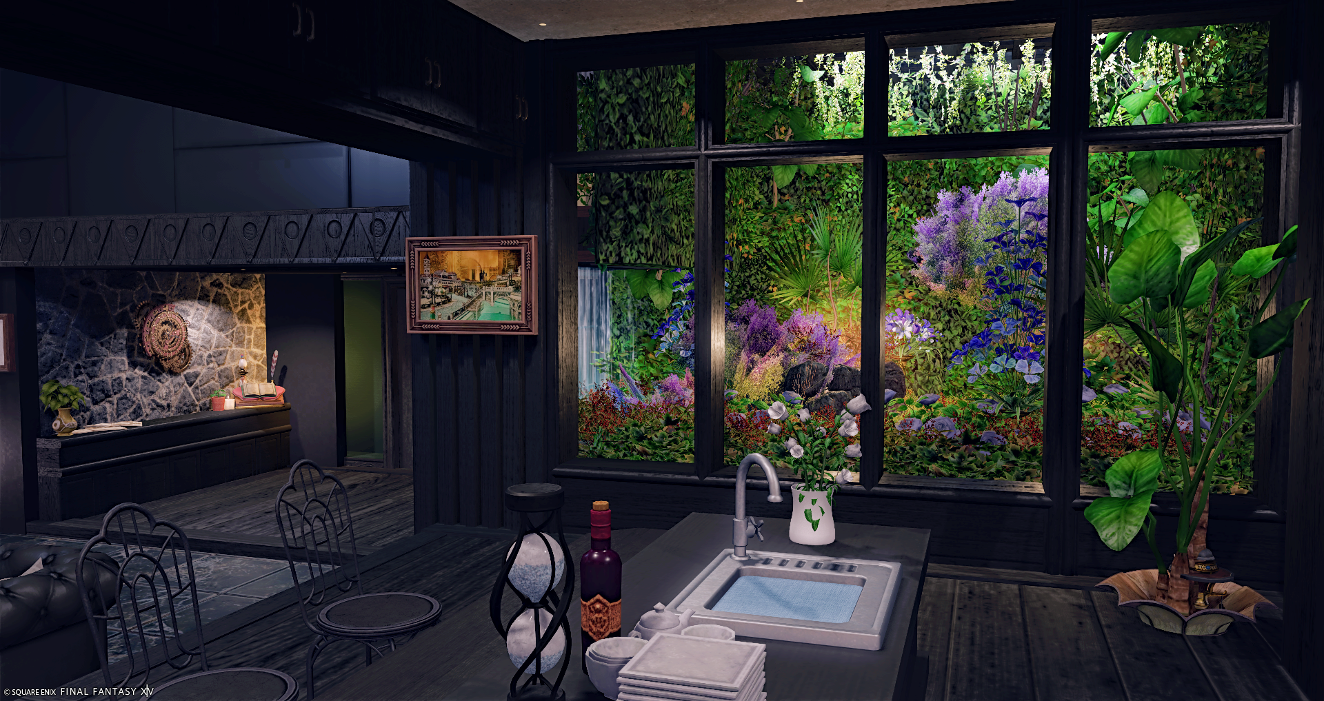 植物たっぷりの景色と黒基調のモダン風のお部屋というオーダーを元にハウジングさせて頂きました。
