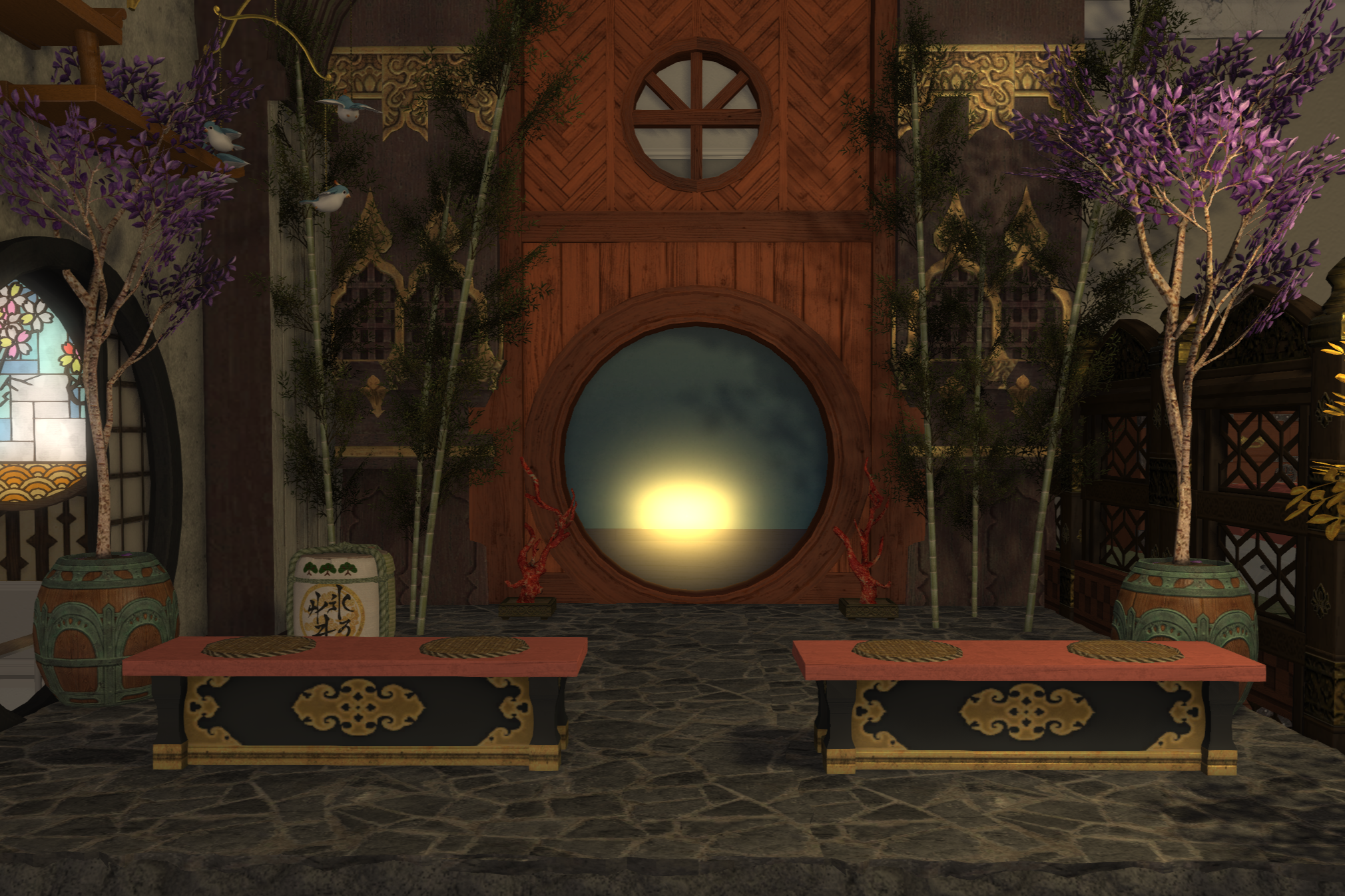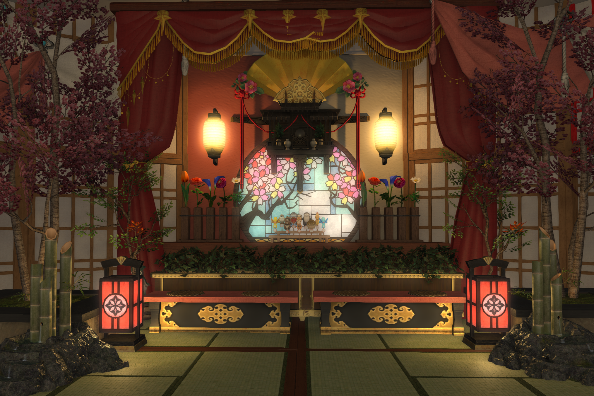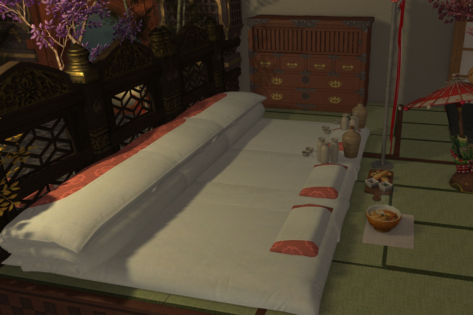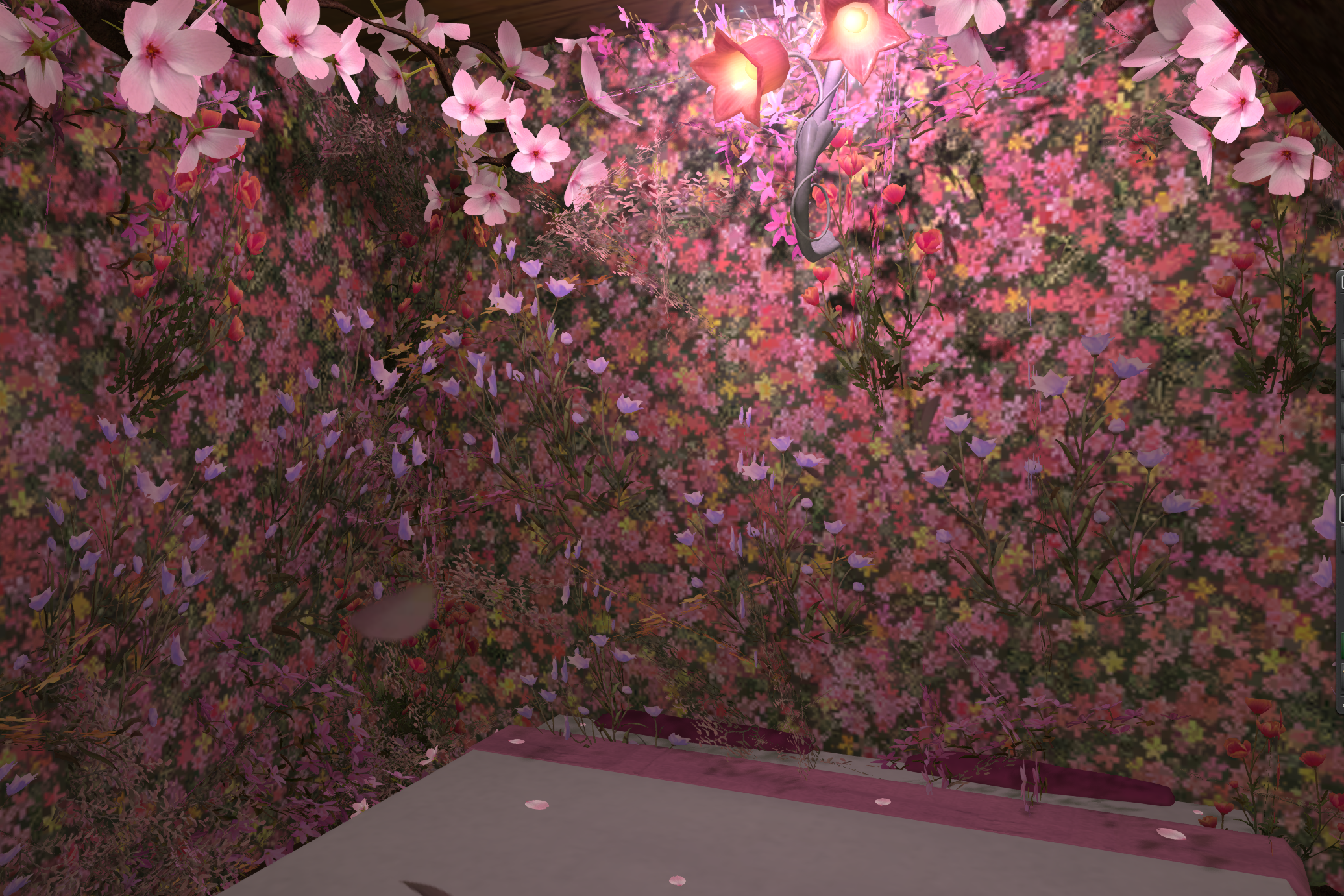 ★2Fレンガ壁紙貫通すると桜尽くしベッドがあります。狭いのでカメラ酔いするかも。